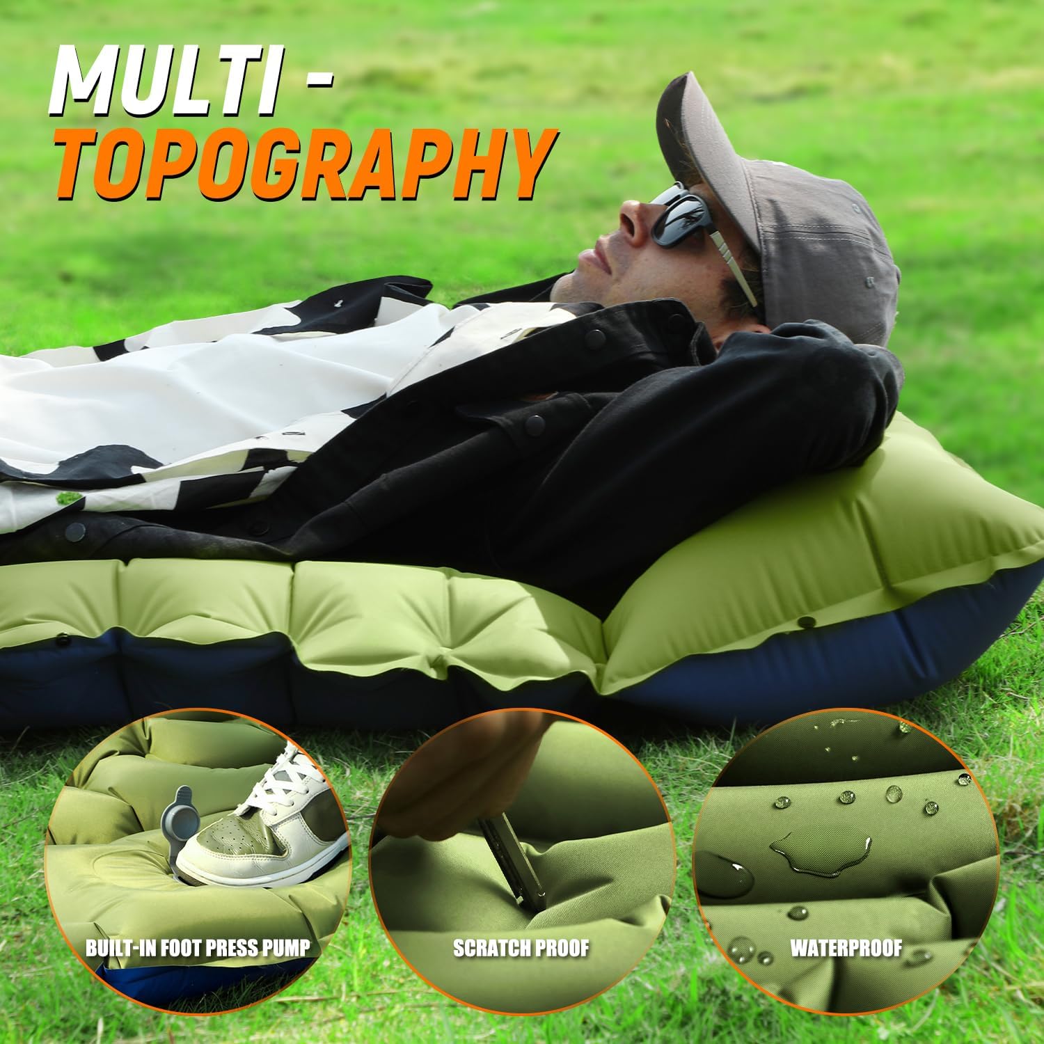 Myslop Camping Sleeping Pad,Self Inflating Sleeping Pad with Pillow Built-in Foot Pump Portable Inflatable Sleeping Pads Compact for Outdoor Camping, Backpacking,Hiking,Tents