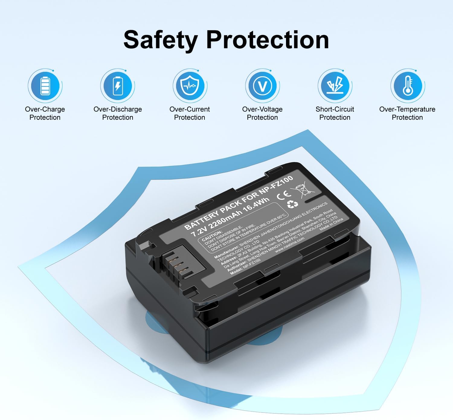 ✅【Compatibility】: Completely replace original NP-FZ100 battery, Fully compatible with Sony FX3, FX30, A7iii, A7iv, A7C, A9, A6600, A6700, ZV-E10ii, ZV-E1, A9S, Alpha 9, A7R III, A7R IV, A7RV, etc.