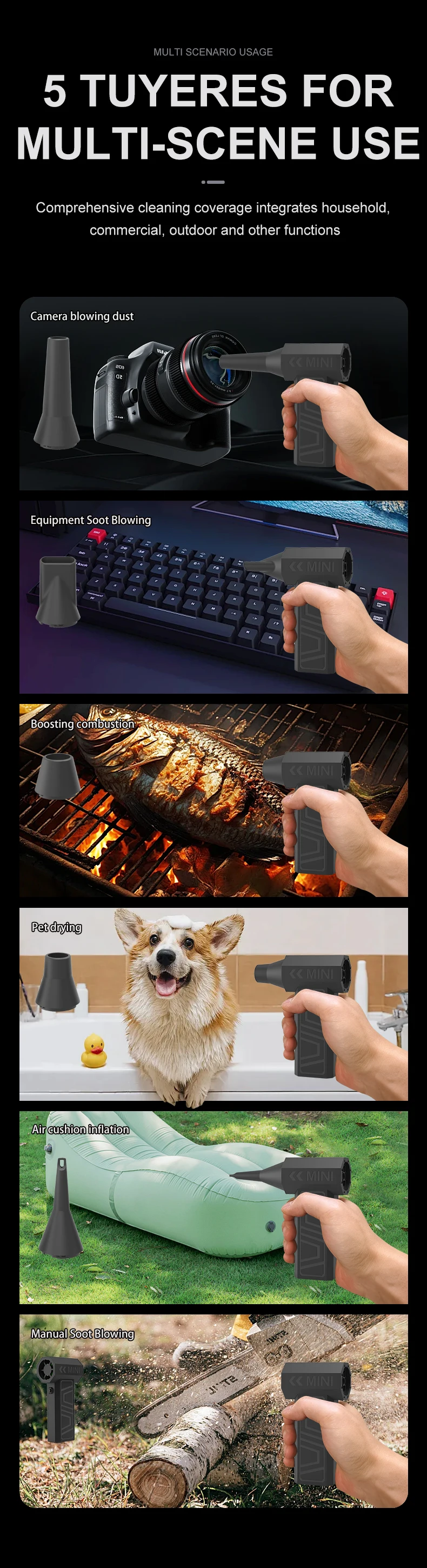 - Ultra-Powerful Wind: Blowing force up to 52m/s for efficient dust and debris removal.