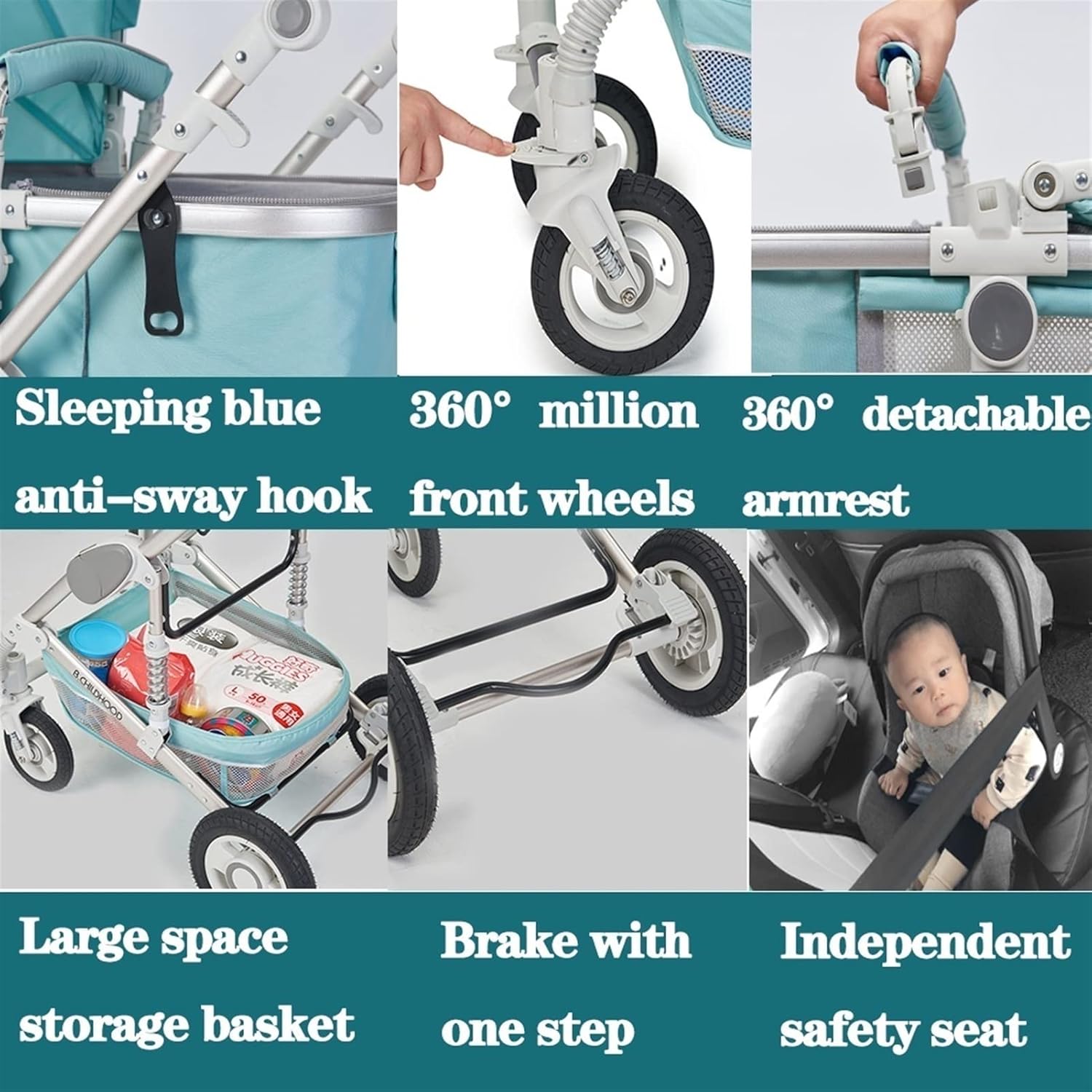 - ★ Ergonomic design:Great for infant and toddler baby. Appearance looks very elegant and luxury; Anti-shock design, the springs in front wheels absorb shocks to protect baby’s brain and body. All terrain pram stroller. Easy ride on all roads; Flexible design, front wheels either 360°rotate or be locked at a precise position