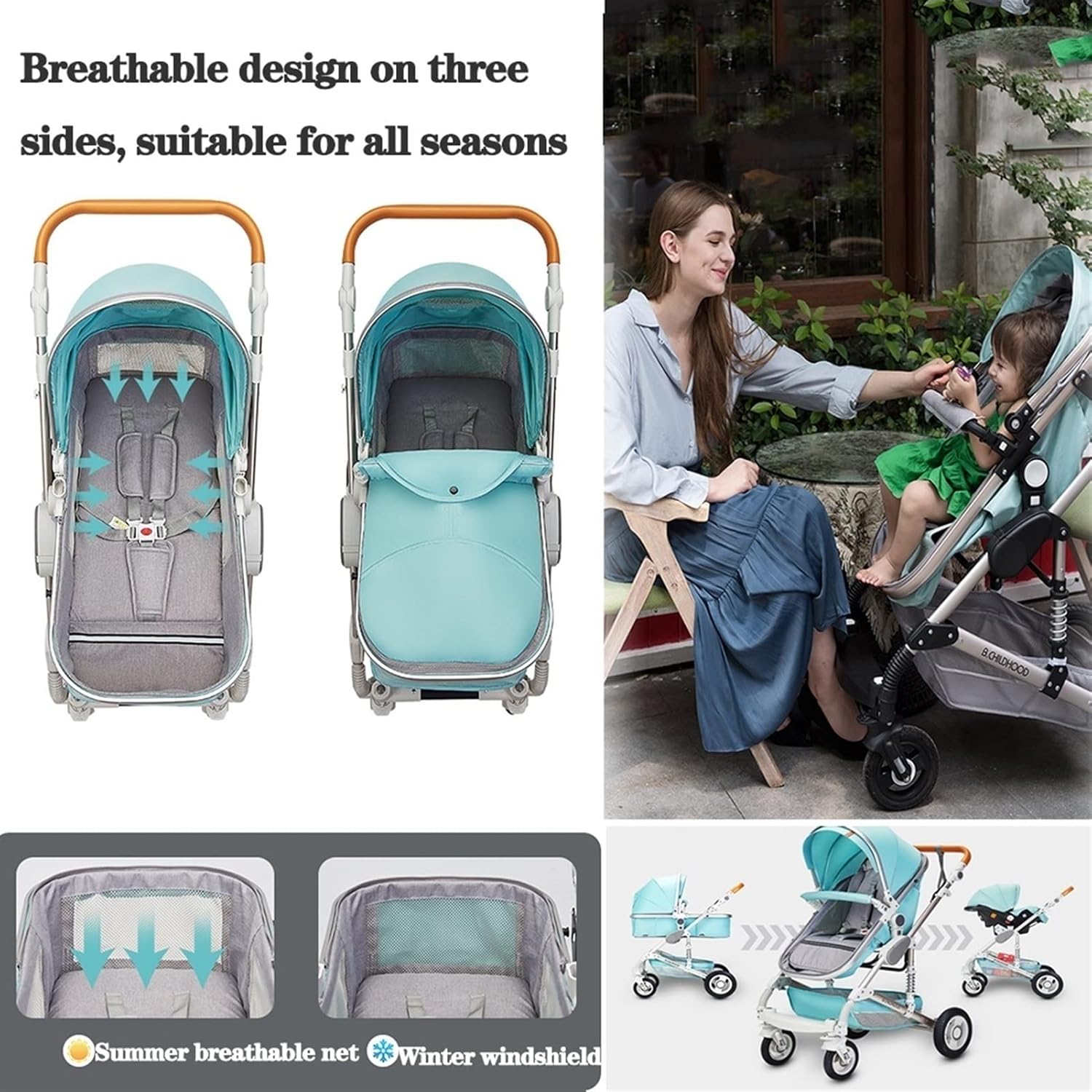 Newborn 3 in 1 Baby Stroller - Lightweight, Foldable Infant Carriage Luxury Pram, Anti-Shock Toddler Pushchair (Black)