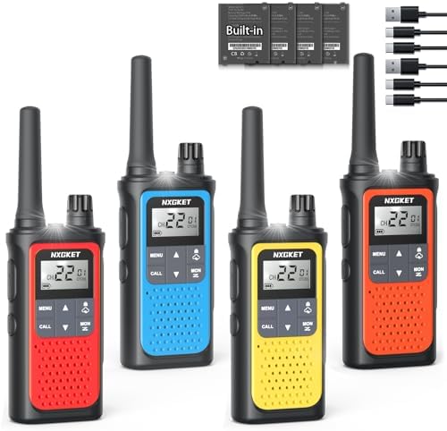 NXGKET Walkie Talkies Long Range for Adults Kids – Rechargeable Two Way Radio with 22 Ch, 1800mAh Battery, USB-C Charging, NOAA Weather, VOX, Flashlight – Great for Outdoor Camping & Hiking 4 Pack
