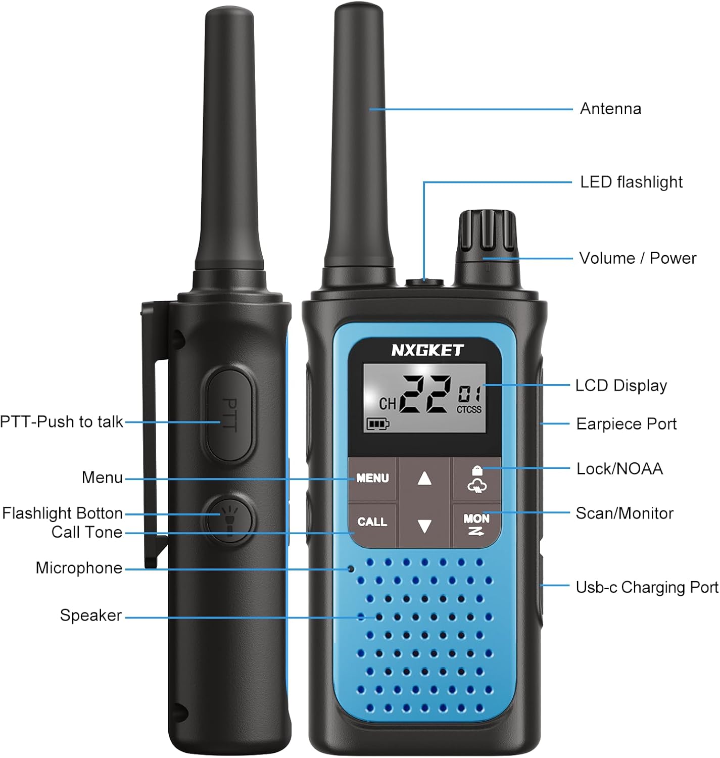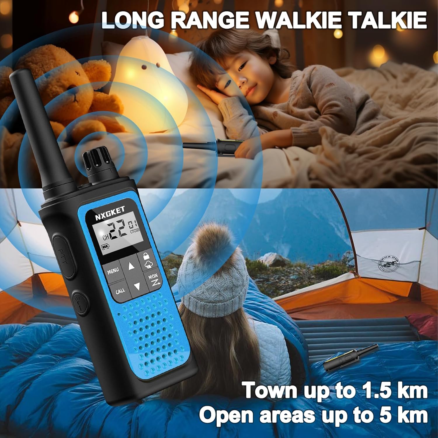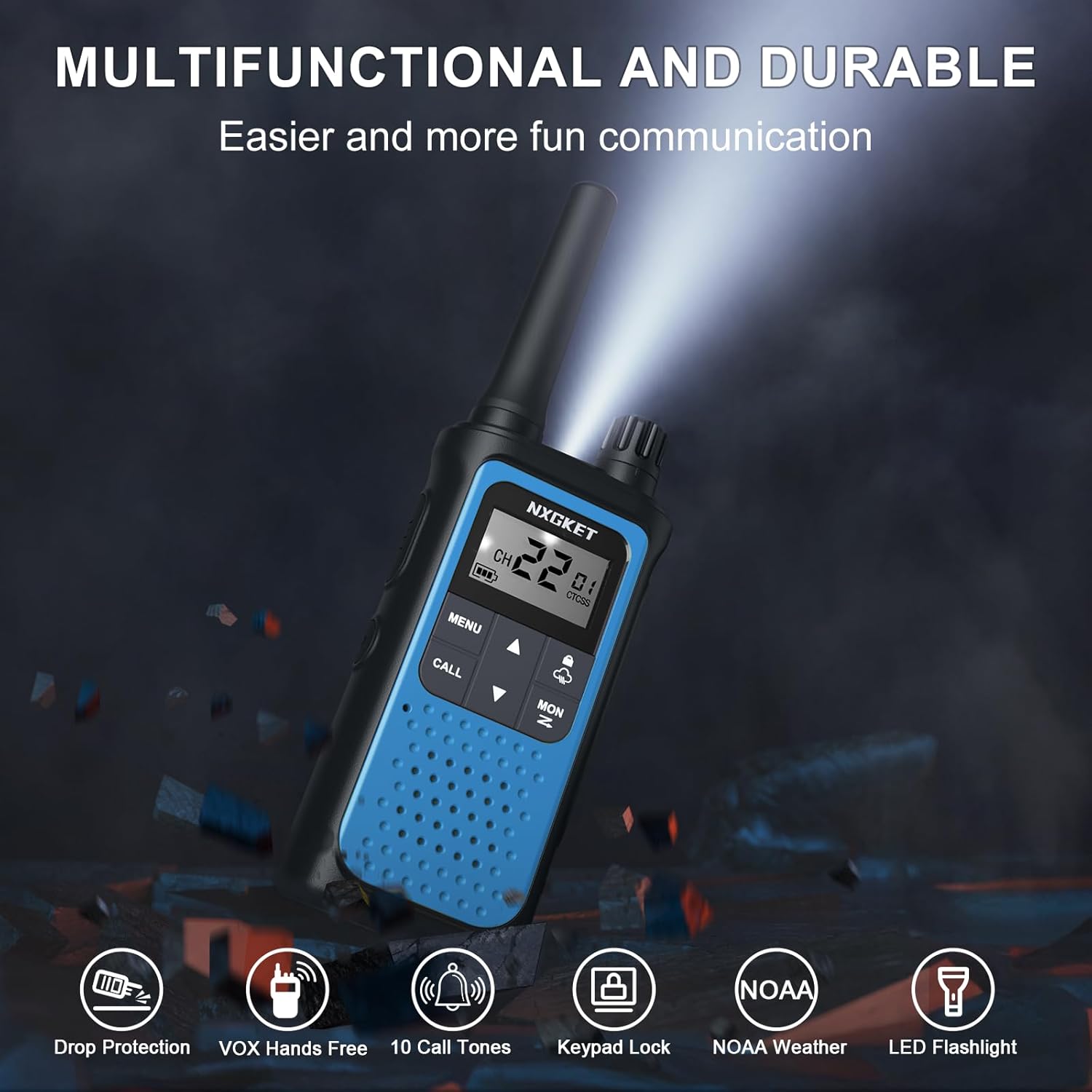 - Perfect Gift for All Ages: NXGKET walkie talkie feature a brighter, more stylish design that’s perfect for both kids and adults. A thoughtful gift for birthdays, Mother’s Day, Father’s Day, Thanksgiving, or Christmas—great for staying connected with loved ones. With long-range communication and a built-in flashlight, they’re ideal for skiing, hiking, biking, road trips, cruises, work, and camping.