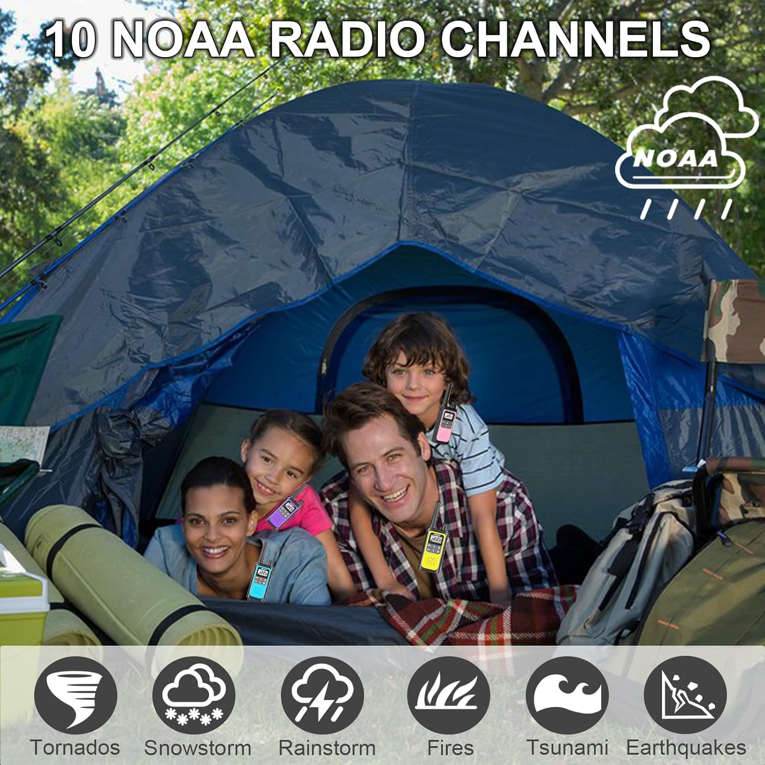 - NOAA Weather Alerts & Hands-Free Use: Stay prepared with built-in NOAA Weather Radio — the walkie talkies will sound an alert when severe weather is detected, helping keep you and your family safe. The VOX hands-free function and included belt clips let you talk without holding the radio, ideal for outdoor adventures and busy tasks.