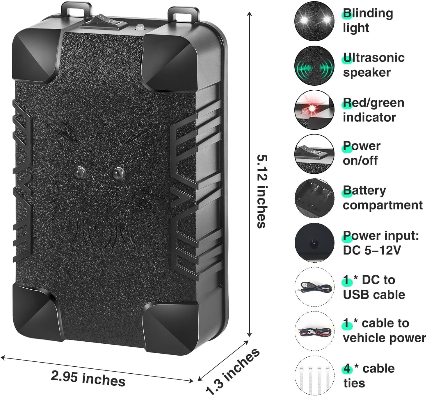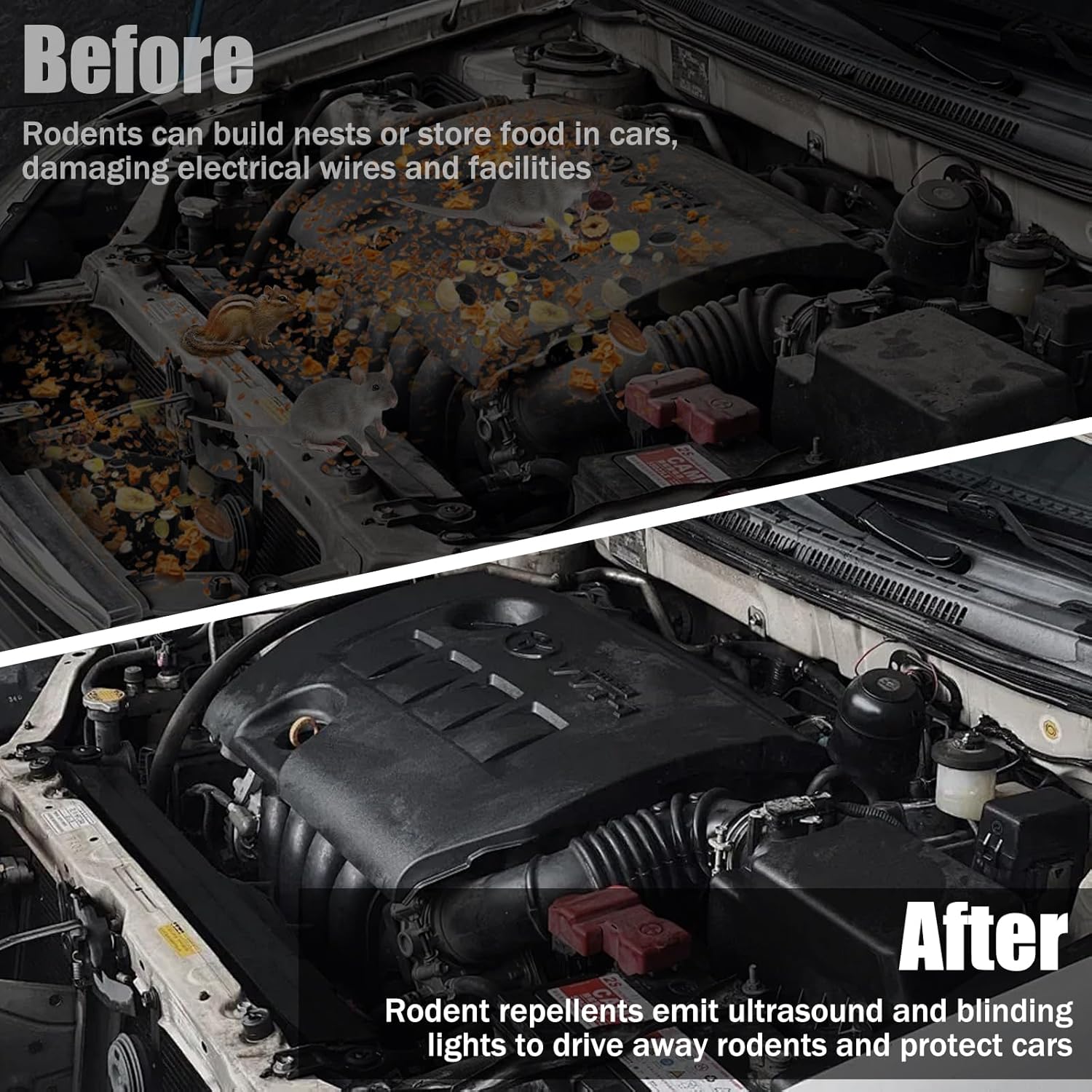 Professional Under Hood Rodent Repeller: Rodent are very sensitive to environmental changes, especially to light and sound. The strong white light can stimulate the retina of mice, making them feel uneasy.
