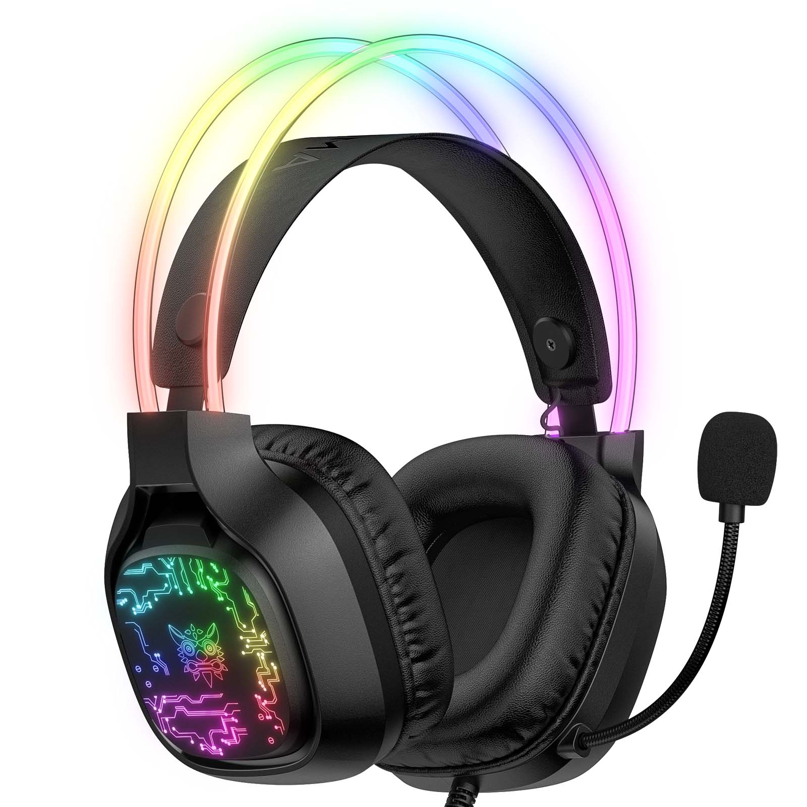 The Onikuma X22-BK gaming headset provides audio with customizable lighting. Key features include: