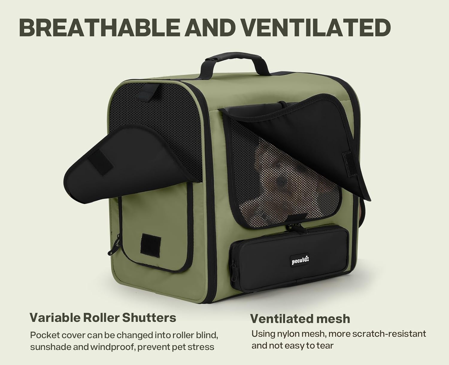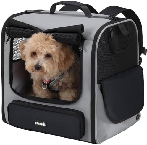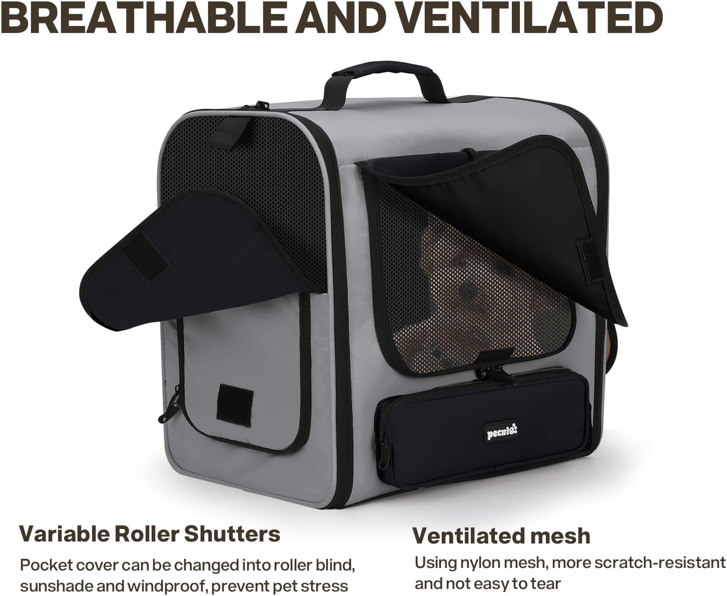 - Ergonomic Carrying System: Pecute dog backpack carrier is thoughtfully designed to make traveling with pets easier. Padded sponge + breathable and comfortable sandwich mesh shoulder straps, back pad, and waist pad help buffer shoulder and back pressure, with additional non-slip fixed shoulder buckle for better fit and carrying experience. It can also be carried by hand, with the bag remaining balanced for pet comfort.