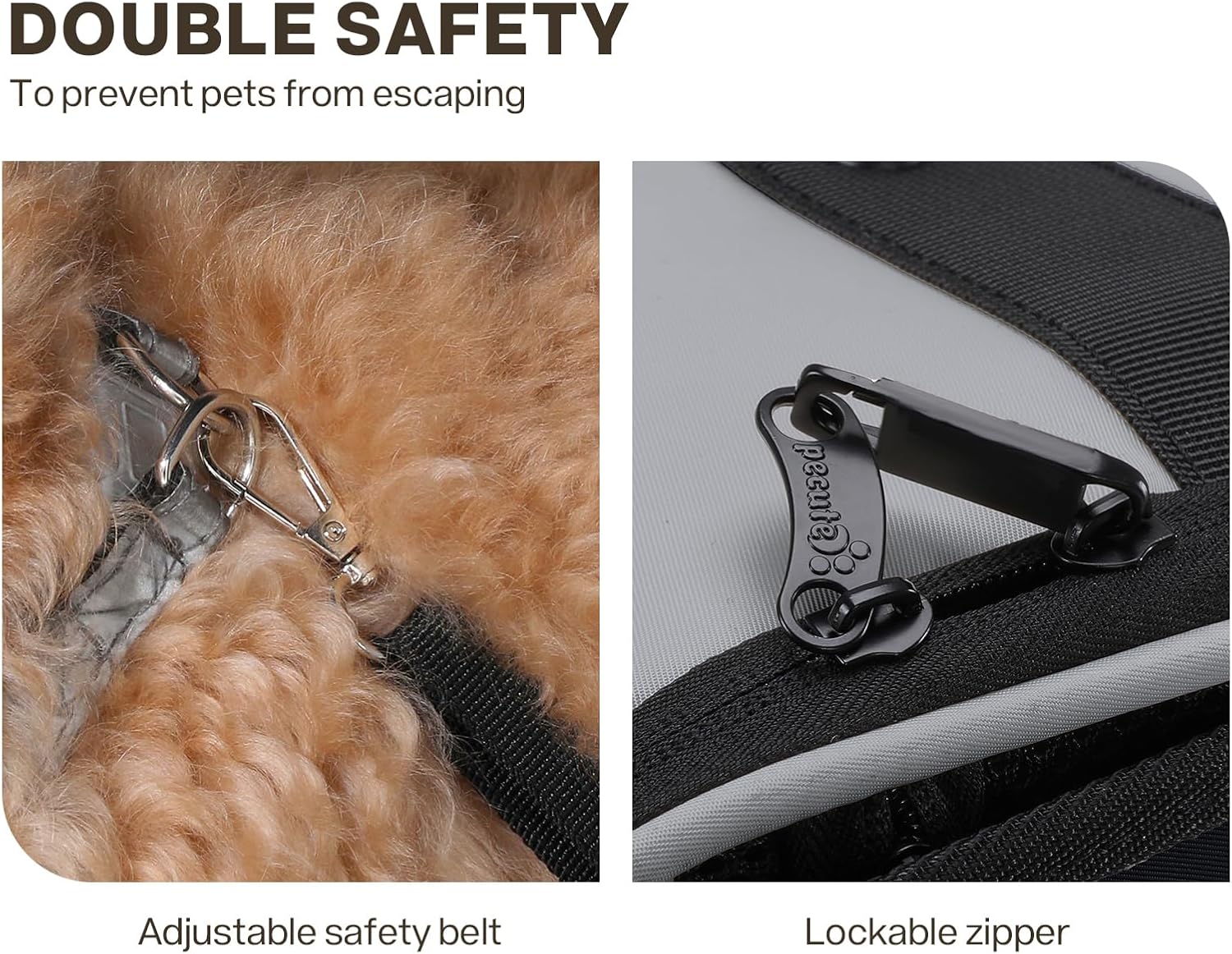 Pecute Cat Backpack, Dog Backpack Carrier with Widened Interior Space,Stable and Secure Pet Car Seat for Sitting and Lying, Breathable Pet Transport Bag Suitable for Hiking, Trekking, Car TravelGray