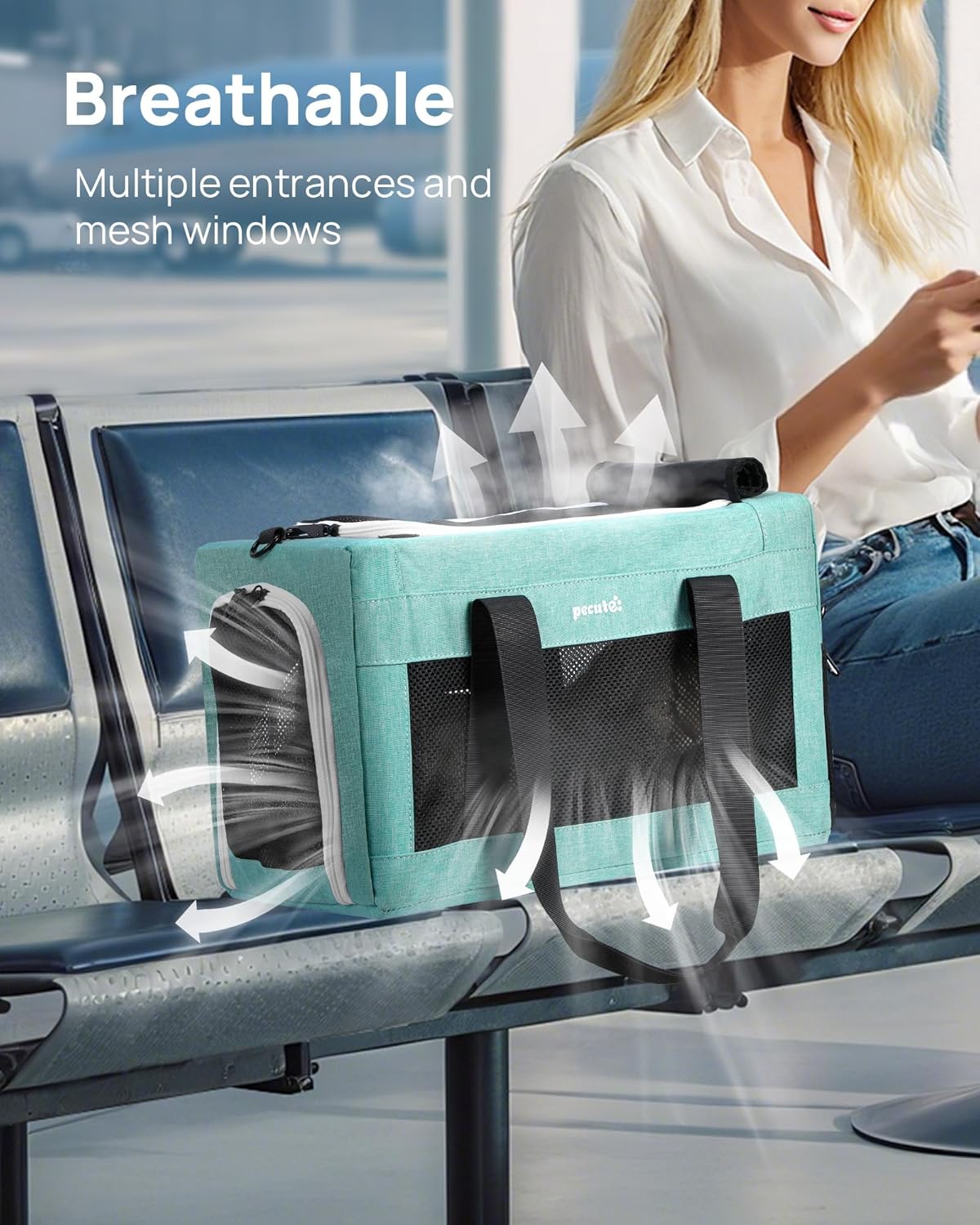 • Airline Approved: Our cat handbag can be brought on board an aircraft and placed under the airplane seat when laid flat. It is suitable for multiple airlines: Allegiant Air, Southwest Airlines, Air Canada, Spirit Airlines, Alaska Airlines, Delta Airlines, United Airlines, and American Airlines (Please note that this bag is primarily designed based on the dimensions of the aforementioned airlines. We recommend checking the specific requirements of the airline you plan to travel with before purchasing.)