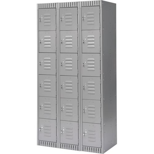 Lockers, 6 -Tier, Bank of 3, 36" x 18" x 72", Steel, Grey, Knocked Down