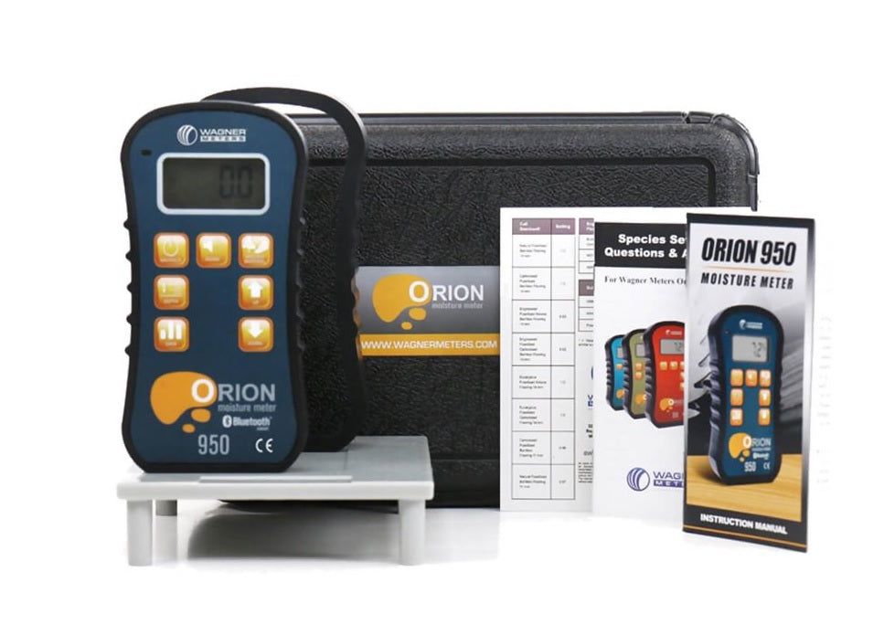 The Wagner Orion® 950 Smart Pin-less Wood Moisture Meter Kit is the all-in-one solution for busy professionals desiring superior accuracy and multi-tool functionality. The Wagner Orion 950 features an on-board Equilibrium Moisture Content (EMC) calculator, Bluetooth connectivity to free smart device apps, built-in temperature/RH sensor, and more.