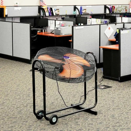 Easily move the Global Industrial™ 36" Portable Tilt Blower Fan where you need it most to help cool down areas. This Portable industrial fan is powered by a 2-speed, 2/3 HP, 4.5/4.0 amp motor that provides 13300/10500 CFM. Tubular steel frame features lift handles, non-marring floor glides for stability, and 2 axle-mounted wheels for mobility. 3 aluminum fan blades are enclosed in wire safety guards with a black finish. UL, cUL Listed. Meets OSHA Standards and conforms to UL507 Standard. Horsepower rating based upon maximum speed/load. This product has limited warranty of 1 year.