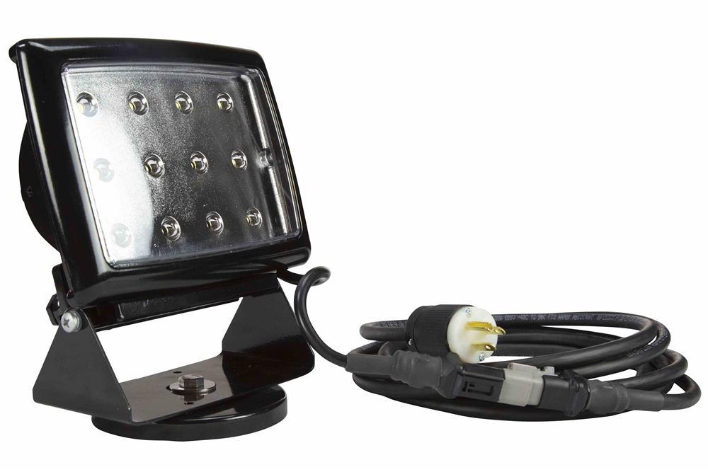 The AML-LED-WP40-M consists of twelve, 3.3 watt LEDs housed within a waterproof aluminum housing that is powder coated for added durability and resistance to corrosion. The housing incorporates integral cooling fins for efficient heat dissipation and increased LED longevity. The LED lamp assembly is protected by a shatterproof polycarbonate lens which is secured to the housing with a waterproof seal. A 1/2" waterproof connector provides a secure and sealed power connection point and rounds out this unit`s weather resistant construction. The AML-LED-WP4-M Mechanics` light from Larson Electronics produces a light beam that is longer and narrower than a standard Rab Floodzilla 250W Metal Halide. The beam will illuminate an area nearly twice the distance as a standard 250W metal halide flood light, but is 30% narrower than the metal halide flood. With the significantly lower heat production compared to incandescent, halogen, and metal halide lamps, this LED work light is suitable for working within close range of the light without risking burns.  Mounting hardware for the AML-LED-WP40-M consists of a stainless steel black coated bracket that allows vertical adjustability and a 200lbs grip magnetic base. The magnetic base will hold this LED light securely in place even if mounted on walls or overhead, and is strong enough to withstand the vibrations of running equipment. This unit is designed to operate with voltages ranging from 110 VAC to 270 VAC, providing versatile power connection options and the ability to run the unit with commonly encountered 120-220 VAC voltages. The AML-LED-WP40-M provides an efficient and highly durable alternative to standard metal halide and halogen blasting lights that produces a longer reaching beam while using only a fraction the power. With the AML-LED-WP40-M there is no warm up period, the light can be cycled on and off without any reduction in lamp life, there is no glass or filament to shatter or break, and the solid state LED design provides 50,000 hours of operation. The BLWP-40LED is ideal for sand blasting, water blasting, engine bay work, underbody work, track and racing use, and anywhere where high quality and effiecent work lighting is required.