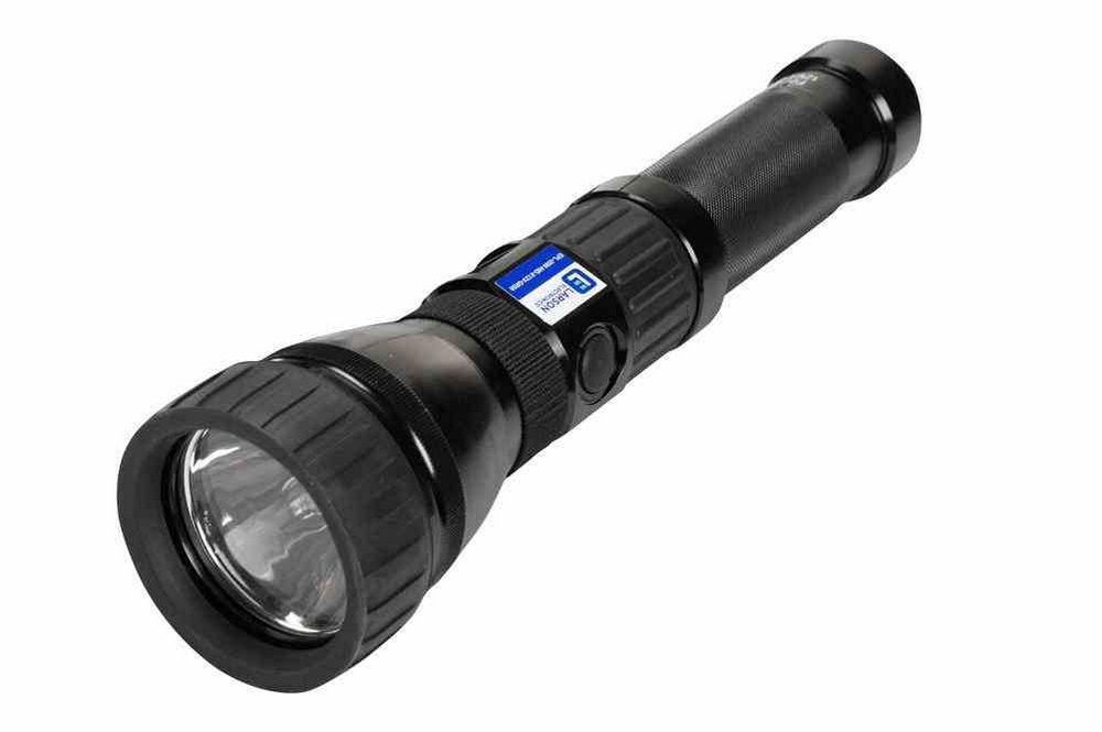 | Buy American Compliant The Larson Electronics ASX-25 Handheld Searchlight is a powerful HID searchlight that is water resistant and has a waterproof battery. This HID search light has a convenient single push button switch located at the base of the flashlight that allows easy one handed operation. This HID search light has clear vision distance of 1,000 feet and will project up to 3,000 feet. This HID searchlight features a 120 minute runtime on a single charge of its waterproof 4000mAh Lithium Ion battery pack. A single 25 watt short arc Xenide HID bulb powered by an internal ballast produces a 1500 lumen beam capable of reaching up to 3,000 feet. This flashlight is IP67 rated water resistant to 2 meters. The beam on this light is a 12° spot configuration and is not adjustable. The HID bulb in this unit provides high power and efficiency as well as a 6500k color temperature, producing a powerful beam that is a brilliant white-blue in color. The durable aluminum body has a black anodized coating to provide durable protection for this units` internal electronics and an aesthetically pleasing appearance. This flashlight has a single push button switch located at the base of the flashlight that allows easy one handed operation, which combined with its rugged construction and powerful beam makes it a competent all around flashlight capable of serving in industrial, commercial, tactical and private applications with equal effectiveness. This HID flashlight includes a black plastic molded travel/storage case, waterproof battery, AC charger (US/International compatible), Rubber lens/end cap protector, shoulder strap and a lens cloth. A Brief Note About High Intensity Discharge (HID) Flashlights: Incandescent flashlights have a bulb with a filament, much like the common household light bulb. A consistent amount of current is fed to the bulb. The filament glows and light and heat are produced. The filament glows because it is a poor conductor of electricity. Eventually the filament breaks due to vibration or diminished capacity. HID flashlights have a globe of gas that contains bounded by electrodes. A spark jumps across the electrodes igniting the gas. Initially, the amount of current required to ignite the gas is higher. Once the gas is lit, much less current is required to keep the gas burning. A device called a ballast controls the amount of current sent to the bulb. HID flashlights use about 50% less energy than incandescent bulbs, which means longer battery life than halogen incandescent bulbs. More importantly, HID lights have no filament to break. Thus, the HID bulb life is around 2,500 hours, compared to several hundred hours of the filament based incandescent bulb. The HID bulb is more efficient, so it produces much more light with less energy over a long period of time. The trade off, however, is that the ballast that sends current to the bulb is an expensive addition, increasing the cost of the flashlight. The bulb itself is also significantly more expensive than halogen bulbs. |