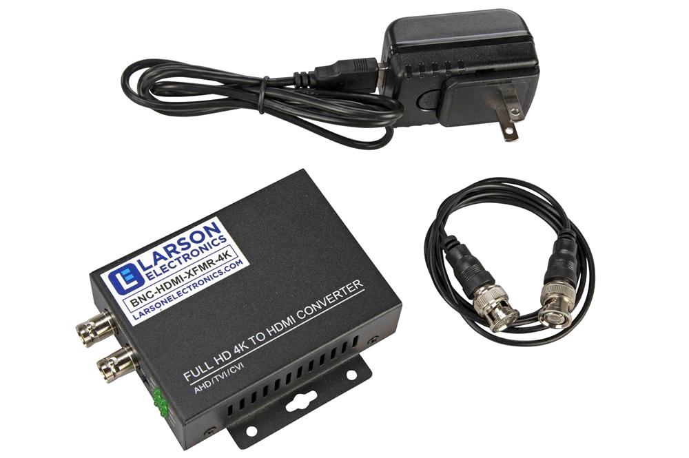 | The Larson Electronics BNC-HDMI-XFMR-4K BNC to HDMI Converter offers direct conversion between BNC and HDMI video formats. The unit enables operators to connect security cameras to monitors with HDMI input ports. The compact converter is a plug and play device (no drivers required). Applications: Converting camera footage, inspections, monitoring, observation, surveying, data gathering and more. |