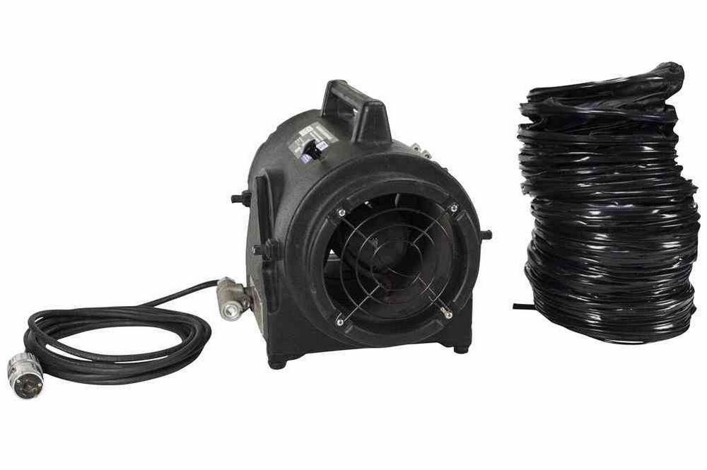 | The EPF-10P.3-220V from Larson Electronics is an Explosion Proof Electric In-line Axial Fan with a 15 foot static conductive duct that is UL and CUL listed and safely and effectively redirects stale air from hazardous location areas. This fan includes a 15 foot static conductive duct and is designed for portability. The EPF-10P.3-220V is ATEX/IECEx approved and can be linked in series when larger lengths of conductive duct are needed. *NOTE: Explosion Proof Fans can be used as an intake and as an exhaust fan.* The EPF-10P.3-220V meets UL and Canadian UL safety ratings for Class I Division 1, Groups C and D & Class II Division 1, Groups E, F and G. The EPF-10P.3-220V is also ATEX/IECEx certified for II 2 Gc Ex d IIB T6 Gb. This explosion proof fan delivers high-performance airflow with a 974 overall CFM rating and 786 CFM when fitted with a 15 foot duct and a 90 degree bend. This unit includes an 8 inch intake and exhaust flange and a built in automatic reset thermal overload for added protection. The ducts on this fan consist of single-ply polyester reinforced PVC vinyl fabric hose with an external wear strip reinforced with a spring steel wire helix, which makes the ducting lightweight and highly compressible. The retractability of the static conductive duct allows for convenient storage and easy transport in a fraction of its fully extended length and has low friction loss. The wear strip offers external abrasion resistance and is listed as YL 94 V-0 flame retardant. The ambient temperature for the fan ranges from -20° to 180° Fahrenheit. Wiring: The 1/4 horsepower electric motor runs on standard 220V 50 Hz and for added safety this fan includes a pre-wired explosion proof switch, dual grounding lugs on the steel housing and 20 foot cord fitted with a 220V straight blade plug. Mounting: This explosion proof fan is designed for portability and durability with a light weight compact body constructed of powder coated steel and a non-sparking aluminum blower wheel. The rubber coated base feet and an integral carry handle provide easy transport and secure placement when placed on a flat surface. |