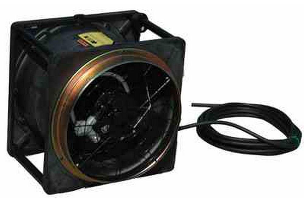 Other features include a light weight/high strength, anti-static glass reinforced ABS housing that is corrosion proof and chemical resistant with an IP65 rated and rain tested switch enclosure. This box blower/fan operates on standard 115/230V AC 60 Hz with an 18 amp initial draw and 5 amp constant draw from the 1.5 horsepower motor at 115V after startup. Included with this unit is 30 feet of cord terminated in flying leads.