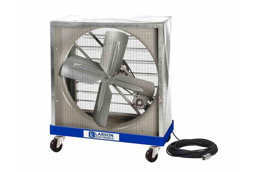 The EPF-RSBF-48-1HP-230V-100 from Larson Electronics is an explosion proof industrial cabinet fan that operates on 230V AC voltages. This explosion proof industrial fan features a 48" diameter spark resistant cast aluminum blade for superior ventilation and air movement as well as a 4-caster rolling stand for convenient and easy movement around the work area. The EPF-RSBF-48-1HP-230V-100 is powered by a fully enclosed and explosion proof 1 horsepower motor. This unit may be used to meet cooling requirements for electronic cabinets, motor control cabinets, fume hoods, air filtration systems and heat exchangers.