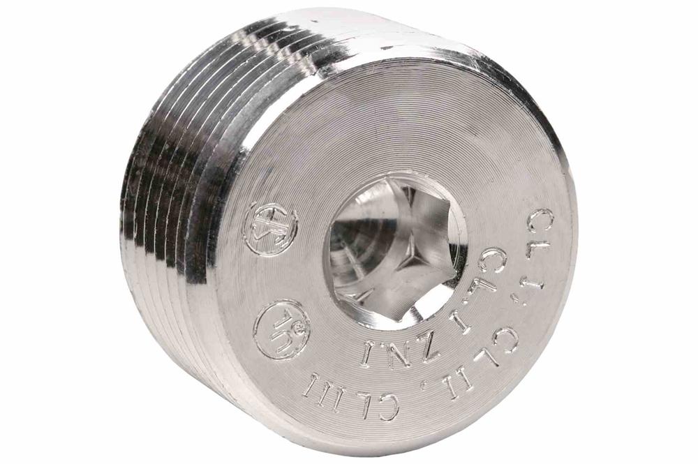 | 1/2" NPT Threaded Recessed Aluminum Conduit Plug for Explosion Proof Junction Boxes These threaded inserts are used for plugging open NPT hubs on explosion proof junction boxes and light fixtures. Cross for PLG1-SA |