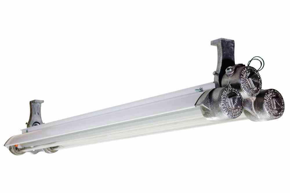 | Made in the USA The Larson Electronics EPL-48-2L-LED-VISUV Explosion Proof Visible/Ultraviolet LED Light Fixture is NRTL Listed for United States and Canada and rated Class 1 Division 1 & 2 and Class 2 Division 1 and 2 for areas where flammable chemical/petrochemical vapors exist or have the potential to exist. This explosion proof LED light features one visible white LED lamp and one 365NM ultraviolet light for combined visible and UV applications such as paint booths, oil rigs, offshore applications, petrochemical, manufacturing, chemical storage, water treatment centers, and food processing plants. This four foot, two lamp combination visible/ultraviolet LED fixture is ideal for operators seeking a top quality explosion proof light that will reduce operating costs, improve lighting quality and reduce downtime incurred from frequent servicing intervals. The EPL-48-2L-LED-VISUV is equipped with Larson Electronics’ specially designed LED T-series bulbs which produce 3,500 lumens of visible white light and 19,200 mW of ultraviolet intensity. Each lamp has individual leads to be powered separately. Our LED series bulbs are visibly brighter than standard T8`s and have consistently surprised many of our customers with their unexpectedly high light output levels. This fixture carries a T6 temperature rating and is approved for Class I Division 1, Groups C and D, Class I, Division 2, Group A, B, C and D, and Class II, Division 1 and 2, Groups E, F and G environments where flammable or combustible gases, vapors, dusts, fibers, and flying exist or stand the potential to exist. This LED linear fixture is approved for use in confined spaces. | |||||