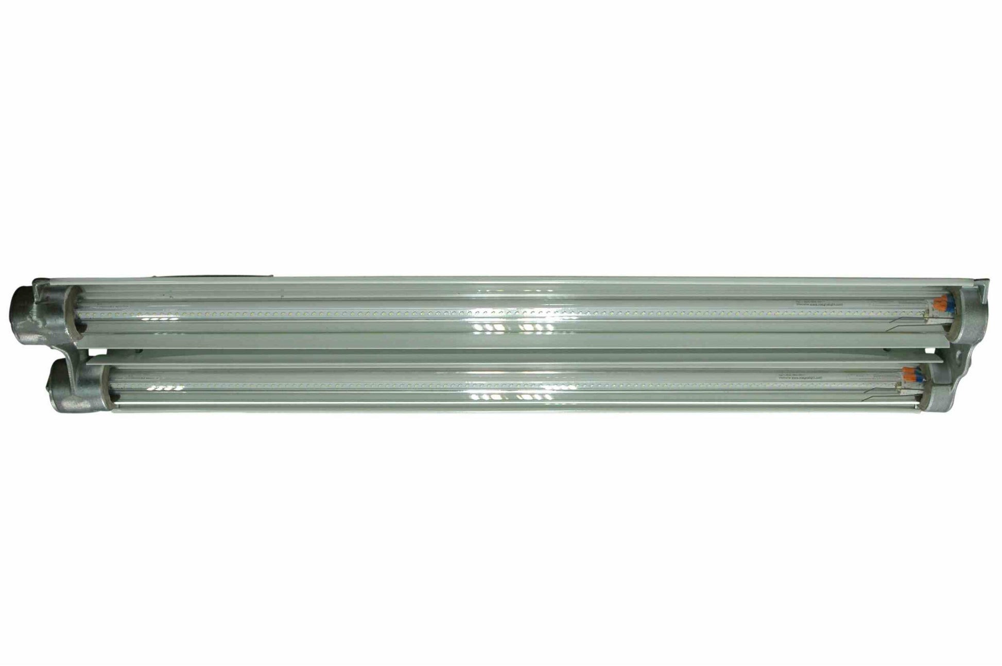 We now offer our second generation LED tube lamps with this fixture which have increased this hazardous location light’s performance. This two lamp explosion proof LED linear fixture is lighter in weight, has a slimmer profile, and produces more light than traditional explosion proof fluorescent fixtures. The four foot long LED tube design bulbs included with this unit are rated at 50,000 hours of service life, which is over twice as long as standard T8 bulbs.
