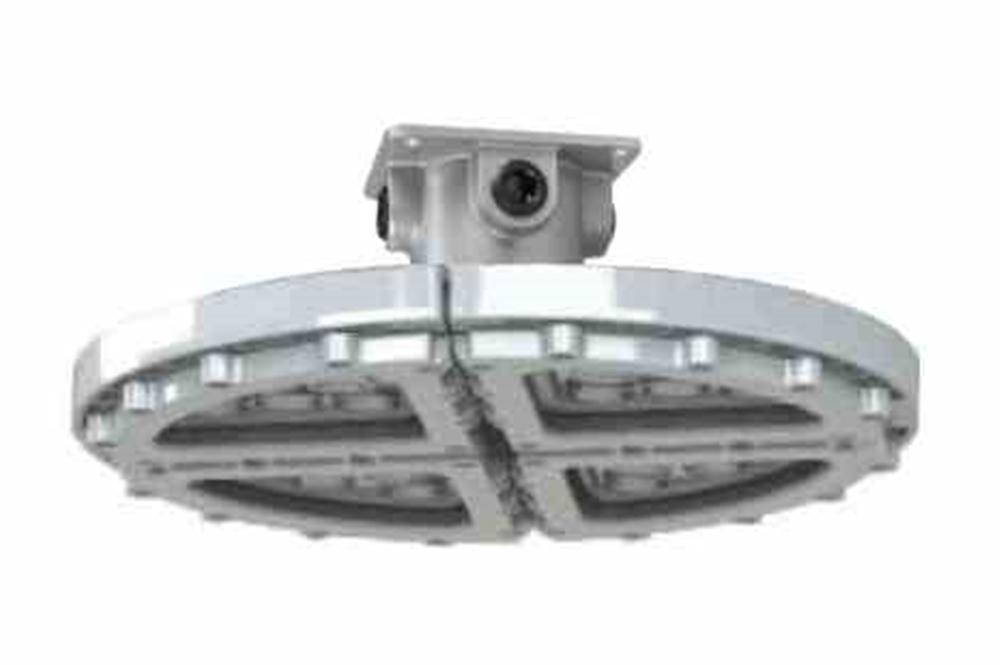 The Class I, Divisions 1 & 2 and Class II, Divisions 1 & 2 explosion proof light fixture provides 17,500 lumens of high quality light while drawing only 125 watts. The copper free aluminum alloy body is powder coated for added durability and an attractive aesthetic appearance. A special heat dissipating design in conjunction with LED technology helps this fixture to achieve an excellent 60,000-hour rated lifespan with 80% lumen retention. The low-profile housing makes this lightweight unit an attractive alternative to larger, heavier and older fixtures and requires less hardware to install.