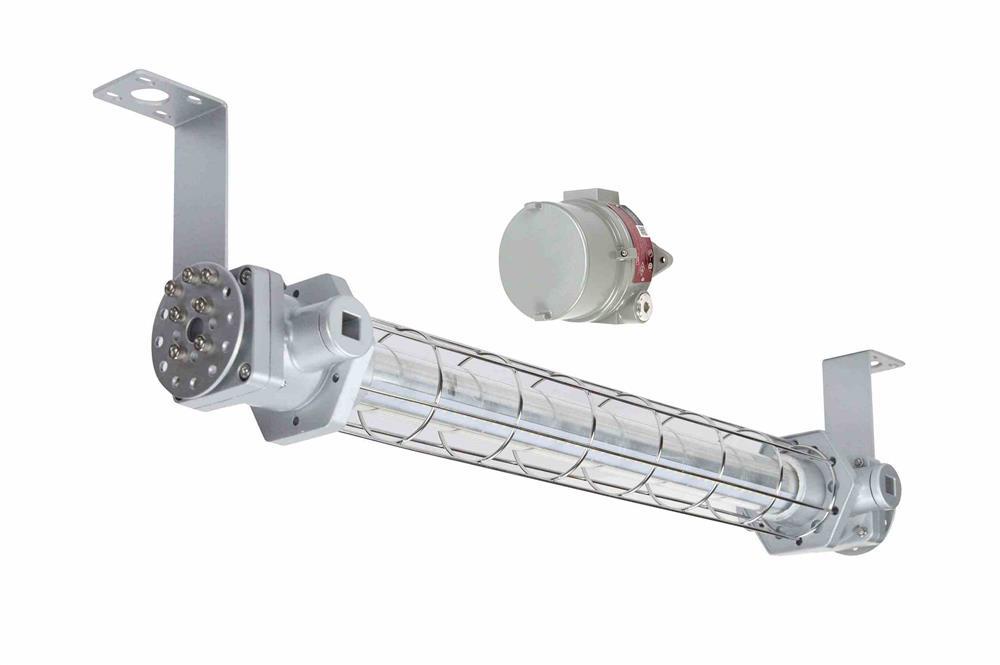 The EPL-LP-24-LED-XEMG from Larson Electronics is an integrated low profile linear explosion proof LED light fixture with a unique design. Instead of using diffused glass, optics, or reflectors to distribute the light, Larson Electronics has positioned the boards within the fixture to provide a wide area light without sacrificing quality or light output. Two offset LED assemblies within the fixture allow this explosion proof linear lamp to provide a brilliant 100° horizontal beam spread and 140° vertical beam spread while achieving a 5,400 lumen output to maintain a small form factor. The LED assembly is protected behind a tempered borosilicate glass tube that is protected by an aluminum wire guard to prevent from accident damage to the light fixture.
