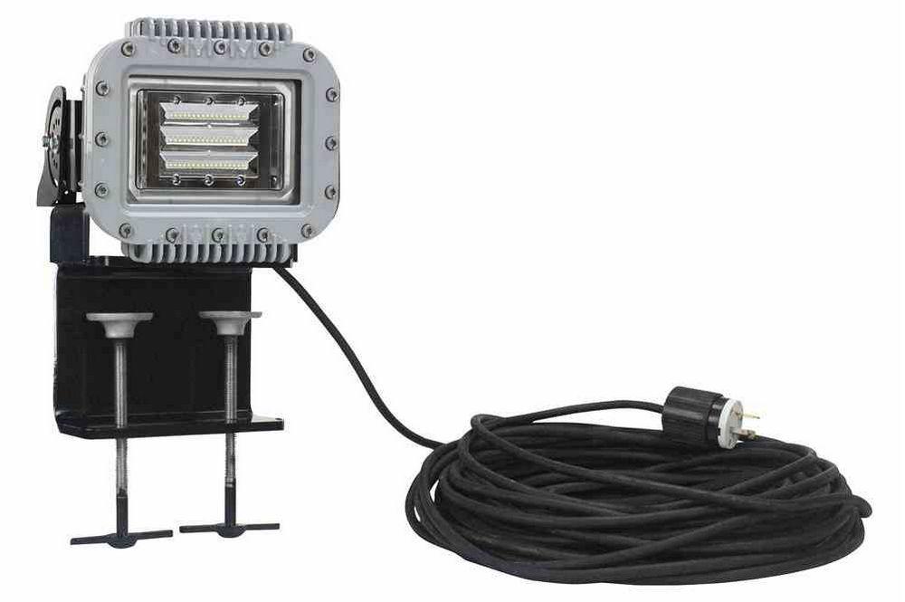 The Larson Electronics EPL-LP-70W-LED-HDBC-20-EPP Low Profile LED light fixture with heavy duty bar clamp mount provides operators with a powerful and energy efficient alternative to traditional hazardous location luminaries. LED technology and compact design makes this lamp an excellent replacement upgrade option for bulky and high maintenance cost older fixtures. The versatile bar clamp mount allows for mounting to round and square poles, I-beams, and desks.