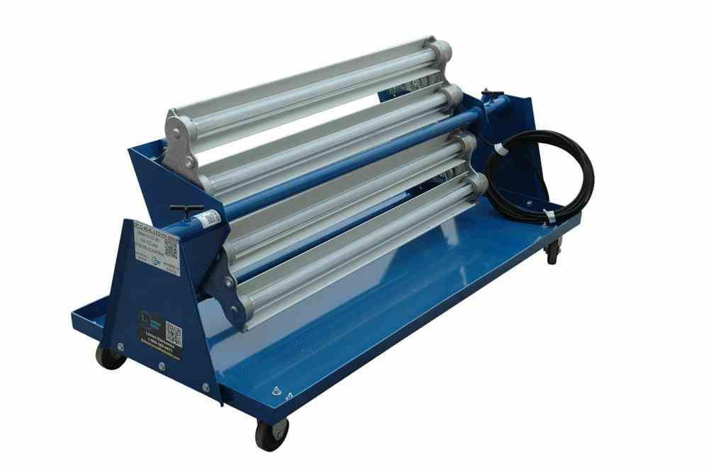 The light fixture used in the EPLC-48-4L is T6 rated and produces 20,000 lumens of light using four, T5-HO fluorescent bulbs. The lamps are protected by heat and impact resistant Pyrex tubes and the fixture is constructed of copper free aluminum alloy. The lamp reflectors are corrosion resistant heavy gauge aluminum and coated with a high gloss reflective finish. This fixture is multi-voltage capable and the entire cart and fixture unit is UL Listed for use in paint spray booths. The cart allows the entire fixture to be adjusted through a wide degree of rotation to position the lights as needed. The standard lamps included with this cart are F54-T5/850/HO; F32-T8 lamps are available upon request. The light fixture used in this cart is compatible with the usual options associated with the EPL-48-4L fixture including optional LED tube lamps and higher power fluorescent tubes. For special requirements or options not listed here contact us using the information below.. Suggested Applications: Paint spray booths, Aircraft maintenance, Oil drilling rigs, Refineries, Solvent and cleaning areas, Gas processing plants, Chemical manufacturing, Waste treatment plants, Gas processing plants.
