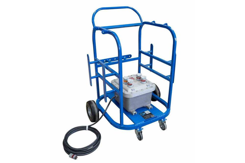 | Made in the USA The Larson Electronics EPLC-TX-1000-3XLV-309 explosion proof power distribution system enables operators step down 120V or 230V AC to low voltage 12 or 24V DC, available via three 16A Class I and II, Divisions 1 and 2 receptacles. This explosion proof transformer system delivers 41.67 amps of 24V DC power or 83.33 amps of 12V DC power. *PLEASE NOTE: ANY FREE SHIPPING OFFERS DO NOT APPLY TO POWER DISTRIBUTION PANELS, TRANSFORMERS, OR SUBSTATIONS* This portable, explosion proof portable power distribution system from Larson Electronics is built to provide operators in hazardous locations with a way to power low voltage equipment with 12 or 24 volts DC output. This unit includes three explosion proof receptacles rated at 16 amps each. This compact power distribution system is designed for portability and convenience as well as durability and is mounted to a wheeled, non-sparking aluminum frame for added protection. | |||||||||