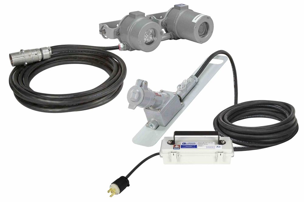 The unit comes with built-in LED lights to support image capturing in low-light conditions and after sunset. This component is available in two lighting configurations: spot or flood. Four Cree EZBright® three watt LEDs producing 180 lumens eah, for a total of 720 lumens, each are arranged in rows and paired with high purity 10 degree optics to produce a tightly focused spot beam with limited spread or light spillage. The spot configuration features a 10° beam that measures 120'L x 60'W. The explosion proof unit is powered via 120-277 V AC input power that is stepped down to 24 V DC to power the camera and to be safe in hazardous areas.
