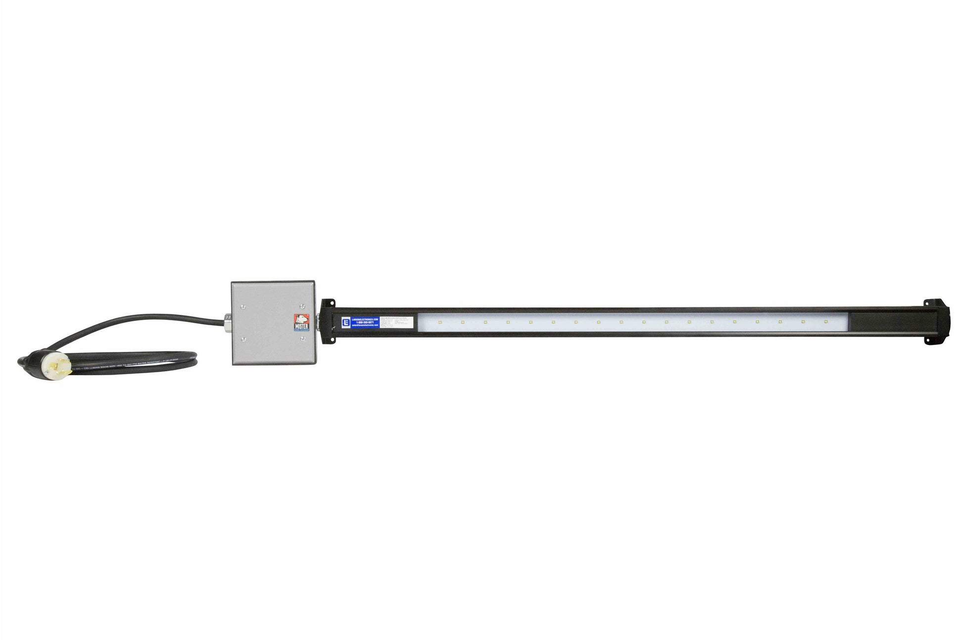 Mounting for this unit is provided by two standard adjustable end brackets that allow operators to mount the light to flat surfaces and then adjust the light 170° vertically for the best placement. The entire assembly weighs 3.5 lbs and measures 48 inches in length, 2.68 inches wide and 1.69 inches deep, making it ideal for mounting in areas where space is limited and a low profile fixture is more readily installed. The power supply for this unit is mounted separately.