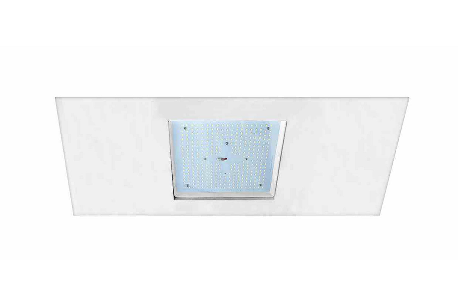 The 4x2 lay-in LED lamp is constructed of die cast aluminum with a powder coat finish over a chromate conversion coating. A clear flat glass lens ensures transparency during illumination. This fixture is designed for recessed mounting and requires a mounting hole to be made in the ceiling or preferred surface.