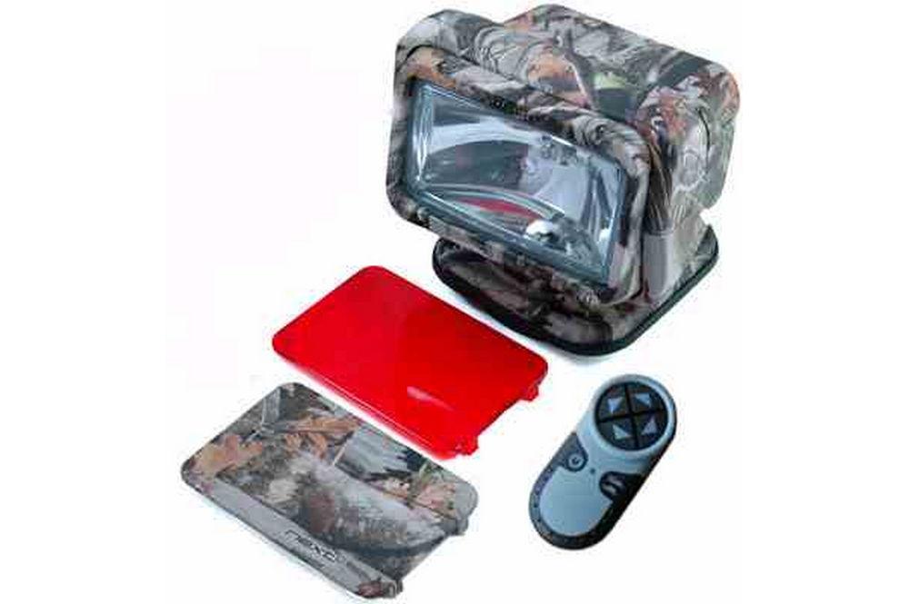 Durability: The GL-2081 Golight Radioray is designed for hunting and demanding outdoor use with a weather resistant housing constructed of high quality ASA Luran thermoplastic that is heat resistant, impact resistant, UV resistant and able to withstand rugged use and abusive conditions. This particular Golight is camouflage in color, making it ideal for docks and buildings where an attractive appearance is desired. Remote movement of this spotlight is provided by an automotive grade internal motor, gear, and transmission assembly that is constructed of LEXAN, brass, and stainless steel to provide rust and corrosion resistance as well as long life and reliable operation.