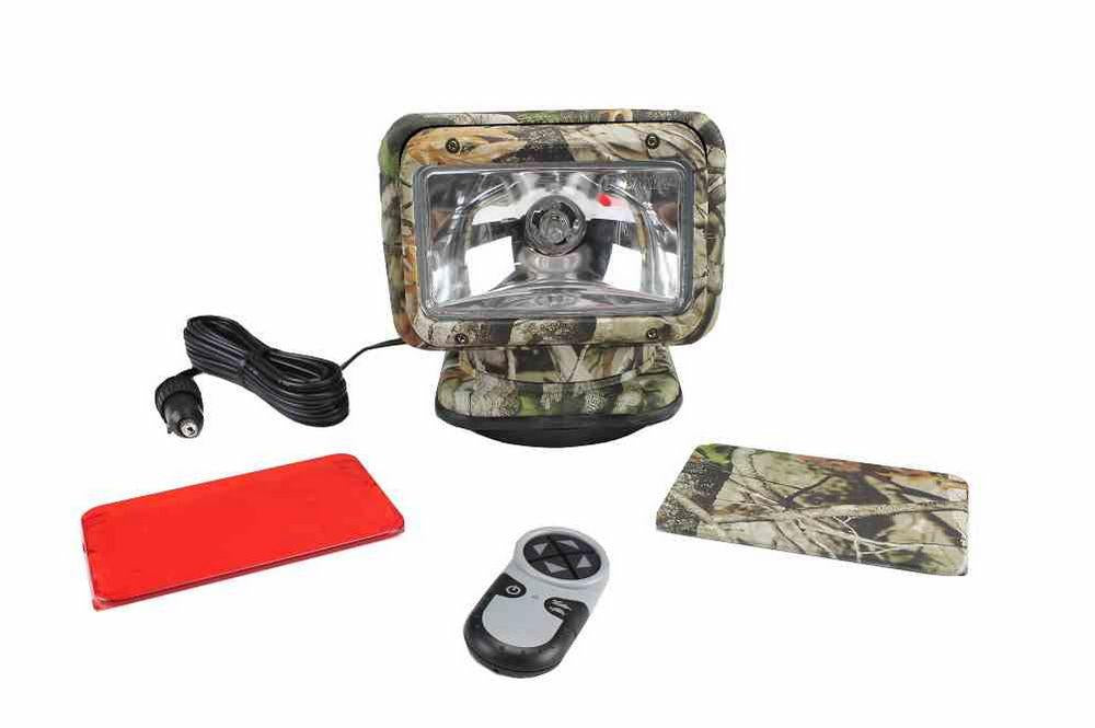 Durability: The GL-2081-M Golight Radioray is designed for hunting and demanding outdoor use with a weather resistant housing constructed of high quality ASA Luran thermoplastic that is heat resistant, impact resistant, UV resistant and able to withstand rugged use and abusive conditions. This particular Golight is camouflage in color, making it ideal for docks and buildings where an attractive appearance is desired. Remote movement of this spotlight is provided by an automotive grade internal motor, gear, and transmission assembly that is constructed of LEXAN, brass, and stainless steel to provide rust and corrosion resistance as well as long life and reliable operation.
