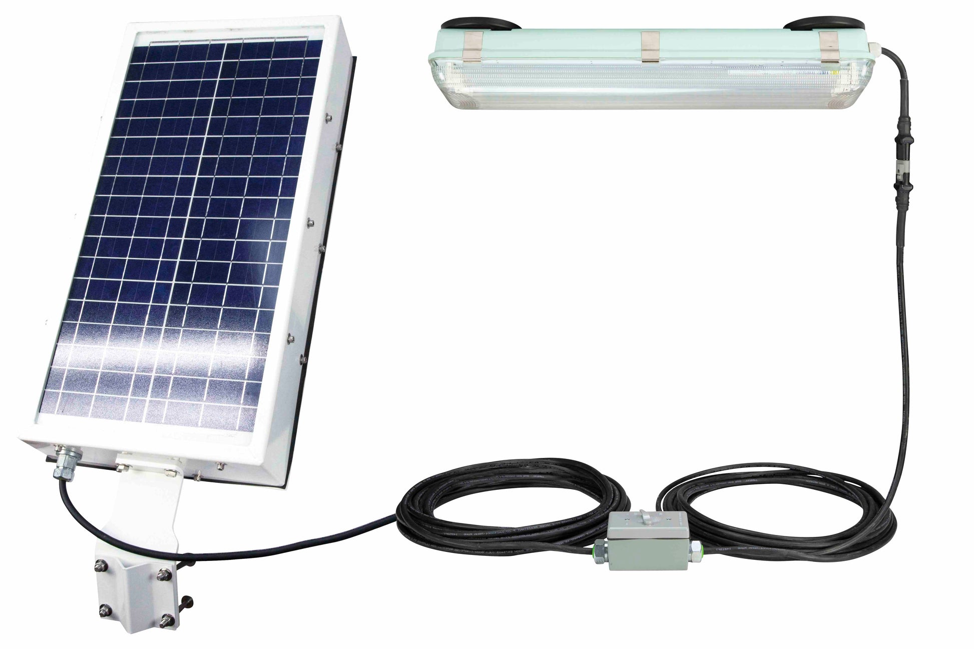 This 2 foot long, 2 LED tube, vapor proof solar LED light fixture is ideal for use in remote locations requiring powerful yet compact LED lighting. The GVP-24-2L-LV-M-SOL-80C-ILS-MOD1 features our second generation LED T-series 14 watt T17 style lamps which produce 15% more illumination at 8 feet, compared to standard T8 lamps when measured with an Extech light meter. Our LED-T series bulbs are visibly brighter than standard T8s and have consistently surprised many of our customers with their unexpectedly high light output levels.