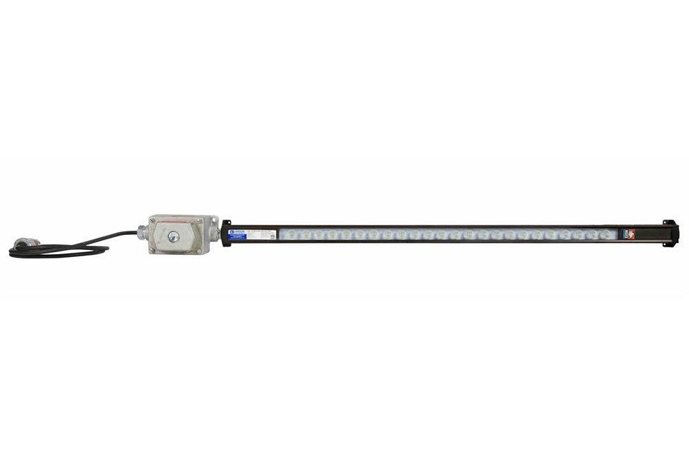Mounting for this unit is provided by two standard adjustable end brackets that allow operators to mount the light to flat surfaces and then adjust the light 170° vertically for the best placement. The entire assembly weighs 2.8 lbs and measures 46.88 inches in length, and 2.68 inches wide and 1.69 inches deep, making it ideal for mounting in areas where space is limited and a low profile fixture more readily installed.