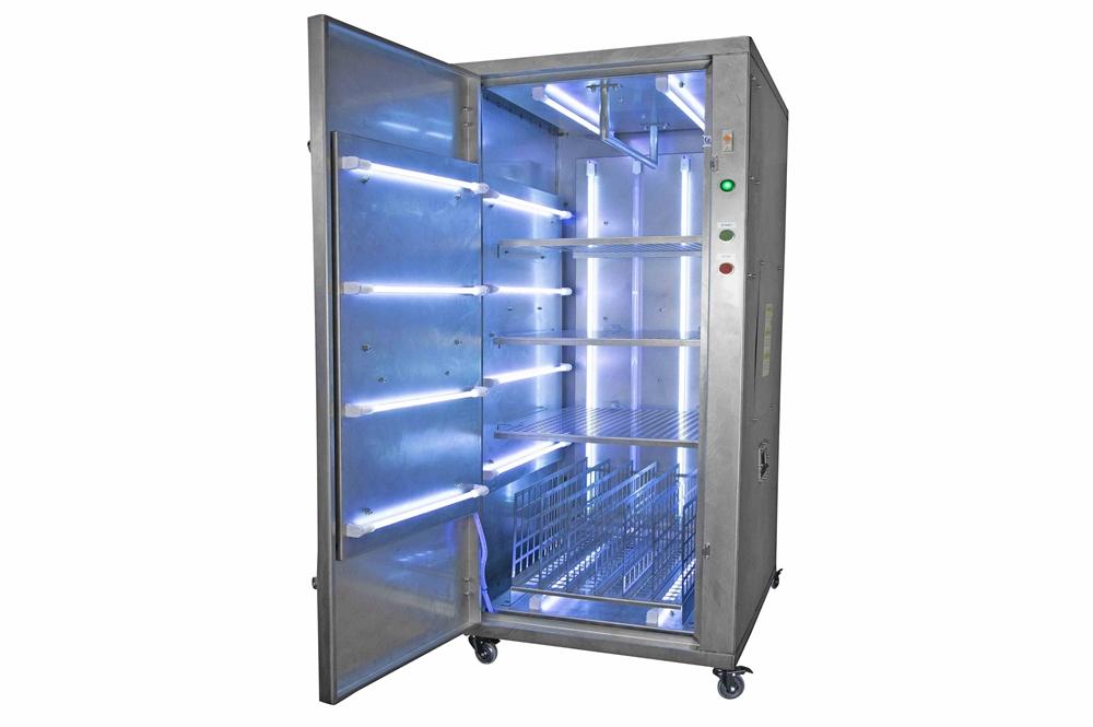 This hazardous location UV cabinet turns off automatically when the door is open. A yellow indicator light turns on when the unit is in use to safely notify the operator about ongoing sanitation. Adhering closely to exposure times at full capacity, multiple UV cabinets can be purchased to clean several devices and articles of clothing at the same time. Operators may access an external timer on the cabinet to ensure the recommended duration of exposure is met every session. The UV light can disinfect over 99% of bacteria, viruses, mold, and spores.