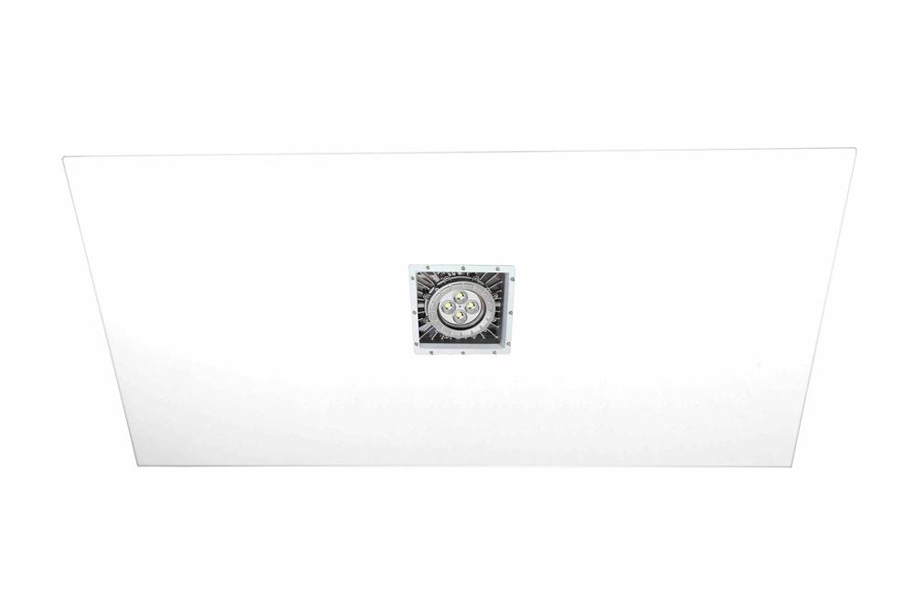 The HALD-48-1X20LED-V4-DIMM Explosion Proof Dimmable fixture is a 2x4 Class I Divisions 1 & 2 hazardous location lay-in LED light fixture is ideal for use in paint spray booths and hazardous environments where space for lighting fixtures is limited. This fixture is T5 temperature rated and is a fully integrated LED unit. The LED assembly is protected by an aluminum framed, hinged, 3/16" thick polycarbonate door that provides direct front access to the internal components. The lamp housing is designed for recessed mounting, and is constructed of non-sparking aluminum coated with a powder coated white finish.