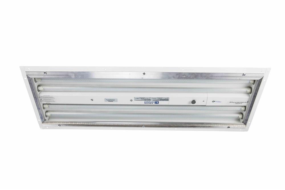 The Larson Electronics HALD-48-4L-ITG-LED Low Profile Hazardous Location LED Light provides a thin fixture profile that allows maximum use of available space. Equipped with four, 4-foot LED lamps, this fixture provides 16,000 lumens of white light during operation. Protected by a 20-gauge steel frame, the LED light designed for paint spray booths and locations where flammable chemical/petrochemical vapors are present.