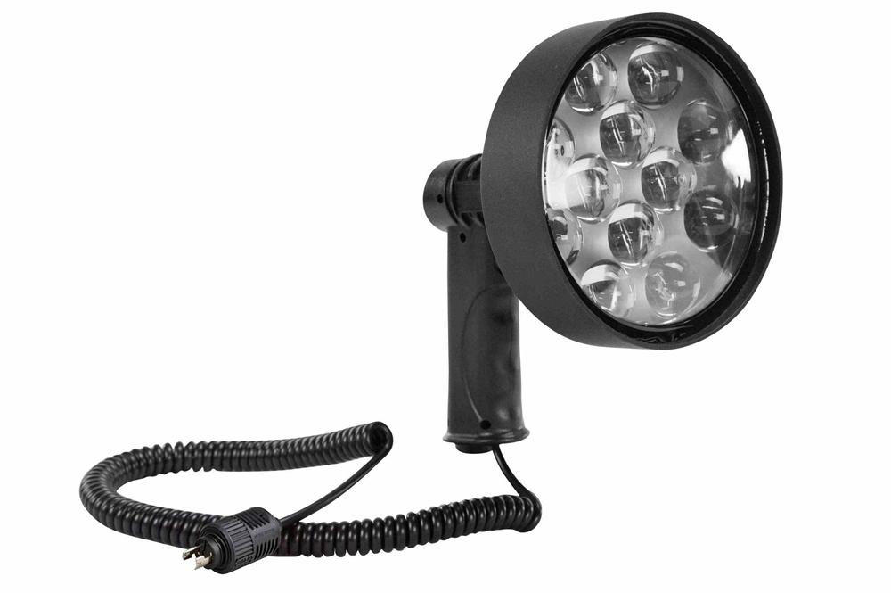 Light Features: The HL-85-LED-CPR-SP27 super bright handheld spotlight delivers an impressive 3,200 lumens while drawing only 36 watts of energy. With a combination seven high output Cree LEDs and a 5" reflector, this spotlight cuts through the darkness with a beam length of over 1,600 feet. The Cree LED units in this light have been chosen for their high lumen per watt ratio and extreme longevity.