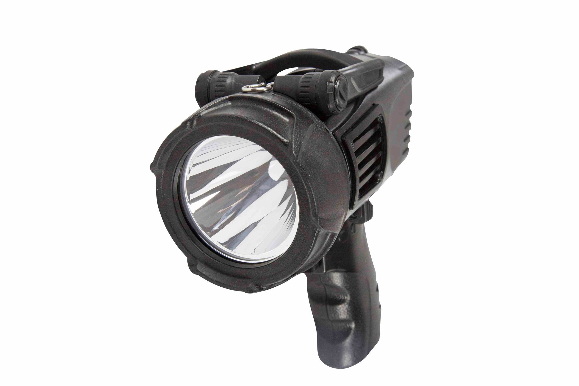 The HL-LED3M-WPG is a C4 LED technology handheld spotlight that emits 210 lumens on high output and 20 lumens on low output. The multi-function battery powered LED pistol grip spotlight offers a powerful, bright, white beam that can switch from high, to low, to strobe modes by simply adjusting the switch located on the side of the handle. In high mode, the unit has a runtime of 8.5 hours, in low and strobe mode, the unit has a runtime of 120 hours.
