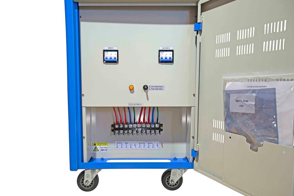 | The Larson Electronics IND-SFC-1P-10KVA-240-50HZ-120-60HZÂ Solid-state Frequency Converter is designed for voltage and frequency rectification in industrial locations. The 10 KVA static converter comes with an input voltage/frequency of single-phase 240V, 50 Hz and an output voltage/frequency of single-phase 120V, 60 Hz. This unit is mobile via four wheels at the bottom of the enclosure. The IND-SFC-1P-10KVA-240-50HZ-120-60HZÂ can be used to accurately convert voltages and frequencies in industrial sites. This 10 KVA unit offers single-phase 240V, 50 Hz on the input side and single-phase 120V, 60 Hz on the output side. During operation, rectification is completed via IGBT. The static frequency converter provides robust microprocessor control, true online double conversion and active input power factor correction. This solid-state frequency converter is equipped with several protective features, including overload, short circuit, over temp, instant power failure connection and alarm. For efficient operation, the unit features smart fan control and ultra high efficiency (98% in Smart Eco Mode). Operators are provided access to a panel, which houses various controls for meters. Available meter components include digital frequency meter, digital voltage meter, digital ammeter and digital watt meter. Mounting: The IND-SFC-1P-10KVA-240-50HZ-120-60HZÂ is secured inside a mobile enclosure with wheels for seamless mobility around the work site. Applications: Industrial facilities, laboratories, air compressor testing, power supply testing, motor equipment testing, quality assurance, lighting systems and more. |