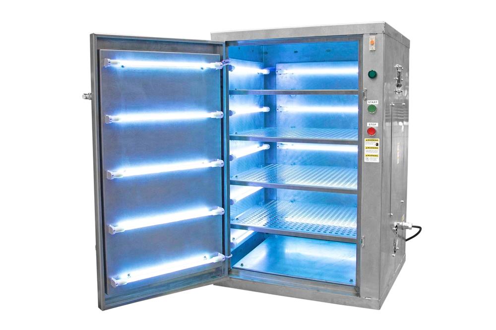 This UV cabinet turns off automatically when the doors are open. Yellow indicator lights on both doors turn on when the unit is in use to safely notify the operator about ongoing sanitation. Both doors also include controls for easy access and operation. With a recommended 5-minute exposure time at full capacity, multiple UV boxes can be purchased to clean several devices at the same time. Operators may access an external timer (set at 5 minutes from the factory) on the box to ensure the recommended duration of exposure is met every session. The UV light in this system can disinfect over 99% of bacteria and viruses, as well as kill 99% of viruses, bacteria, mold and spores.