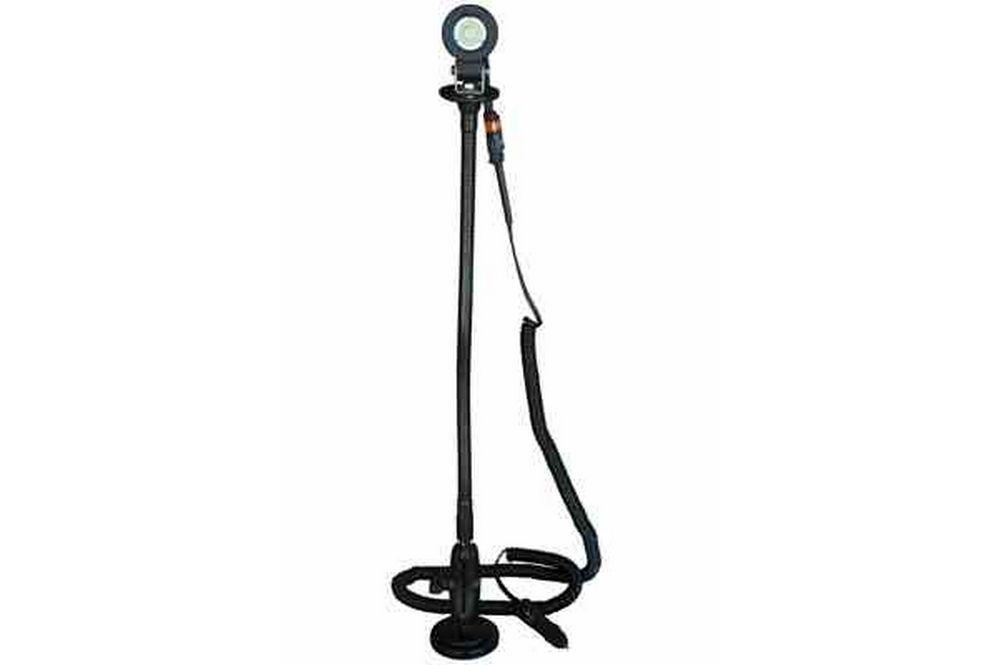 The LEDP10W-1R-GNM consists of one, 10 watt LEDs housed within a waterproof and impact resistant housing and an innovative double ball joint and flexible goose-neck mounting assembly that provides extreme lamp adjustability. The LED lamp assembly is protected by a shatterproof polycarbonate lens which resists scratching and provides protection against impacts and the elements. This unit is designed to operate with voltages ranging from 9 VDC to 50 VDC, providing a 16 foot coil cord cigarette plug in and the ability to run the unit with commonly encountered 9-50 VDC voltages. The LED10W-1R-GNM provides an efficient and highly durable alternative to standard incandescent halogen work and task lights that produces more light while using only a fraction the power. `Goose-Neck` & Double Ball Joint: The unique brackets and mounts on this unit allow it to reach into the most difficult of areas or simply be placed at a perfect angle whenever there is sufficient mounting options. The 20 inch long `goose-neck` allows the operator to position the light exactly as needed to provide maximum effectiveness. This completely flexible goose-neck allows users to position the light at virtually any angle, and will hold this position until moved again by the user. The goose-neck sits upon a double ball joint bracket that provides even more adjustability by allowing the user to rotate the light 360 degrees and tilt/pivot 180 degrees. This adjusting can be achieved without disturbing the position of the `goose-neck` angle. The entire adjustable mounting system is mated to a 100lbs grip magnetic base which allows users to attach this unit to any metallic surface that will accept a magnet and will securely hold the light in position regardless of how it is placed.