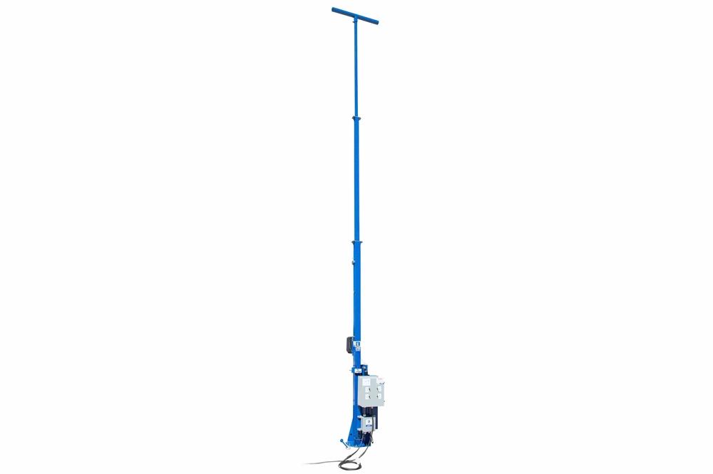 10' Light Mast w/ Electric Winch - 5' to 10' - 208V - Fixed Mount, Base Plate - Cable Guides