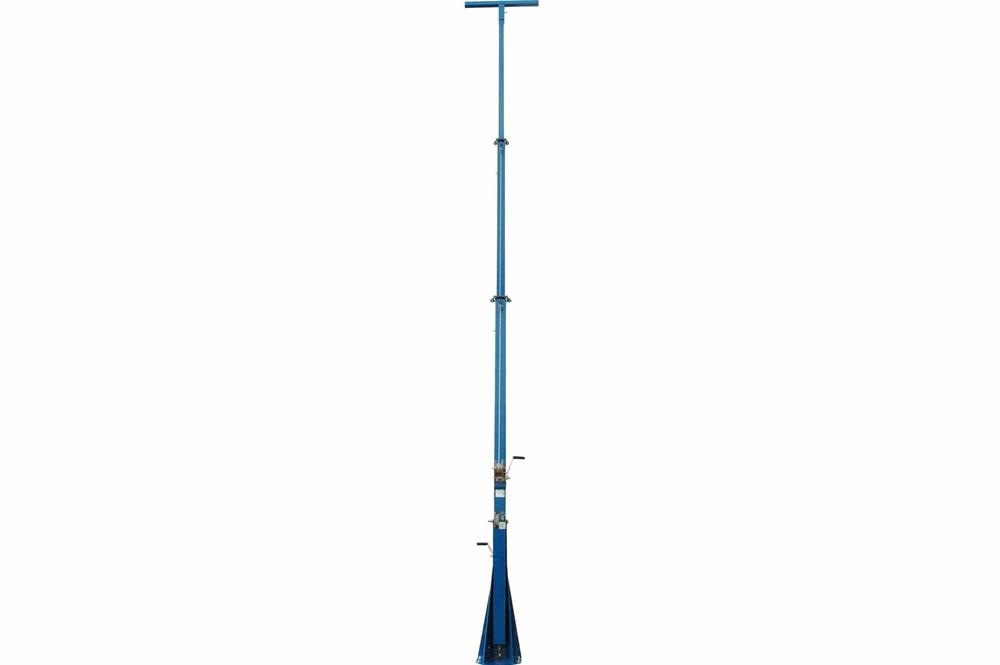 The LM series of towers are powder coated with glossy blue finish for corrosion resistances and aesthetics. These light masts are typically mounted to trailers or other stable surfaces via a 15 inch by 13 inch, 1/4 inch thick mounting base-plate which has been drilled to accept six 3/4 inch anchor bolts. A 44" wide and 2" by 2" by 1/4" thick mounting plate is attached to the upper section of the mast which provides a strong and stable platform for mounted light fixtures or equipment. The LM family of telescoping towers feature a proprietary mast guidance system, which provide increased stability during high winds. When lowered to 12 feet, the mast can withstand winds up to 145 mph. When elevated to its full upright position, the mast can be rotated a full 360°. By loosening the T-Handle, operators can rotate the mast with easy in either direction. The mast can be positioned in one of four different directions, and locked back in place by re-tightening the T-handle. The mast itself spins freely with easy, and can typically be rotated with a single hand.  This light tower weighs approximately 315 lbs, can easily support and lift 150 lbs fixtures. The entire tower assembly is shipped via common freight carrier and when shipped measures approximately 16.5 feet long, 4 feet wide, 5 feet tall and weighs approximately 900 lbs. Larson Electronics can custom tailor these units to the customer’s requirements with longer sections and larger mounting plates. For example, the LM-30-3S is another model that reaches to a length of 30 feet, with a 14 foot lower section, 12 foot middle section, and a 8 foot upper section and a 4 foot wide upper mounting bracket. We also offer a choice of either the manual 1,000 lbs hand winches included standard or optional electric winches. Suggested Applications: Temporary lighting, construction sites, and security camera deployment. We can equip this mast with 1000W or 1500W Metal Halide lights or a wide variety of high powered LED lights with comparable power, including the , , or .