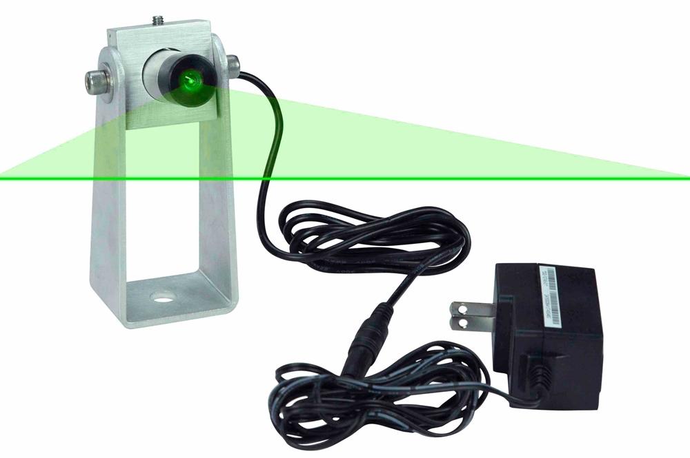 The LZRWL-CRN-GRN-100MW crane warning laser light from Larson Electronics is a powerful laser pointer equipped with a special optic in front that allows it to project a line of light instead of just a single dot. It is mounted on the arm of a crane and projects a 120° angle line, 60° angle line or 30° angle line onto the floor of the work location or area where the crane is operating. Make your beam angle selection when ordering below. This particular unit is compact at only 7.4 inches in diameter by 9 inches tall by 7.6 inches deep, which makes it ideal for applications where electrical power and mounting space is at a premium.