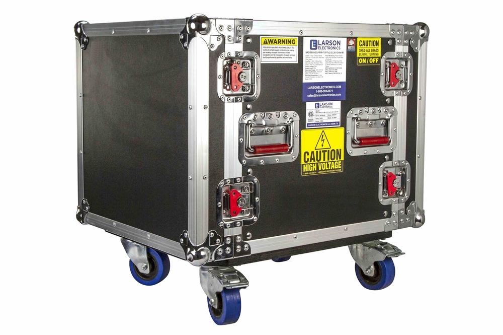 | This unit is Made In USA - Manufactured in Texas The MPD-SB12-CLP-FM-YT0YT-PZ-12.L35-6.N07-R1 from Larson Electronics is a Rack Mount Power Distribution unit that is a portable power solution designed for stages, movie sets, concerts, and entertainment sites. This mobile power distribution unit provides operators the ability to safely tap into and distribute 208Y power from a variety of sources, including generators and direct grid power, found in motion picture production. *PLEASE NOTE: ANY FREE SHIPPING OFFERS DO NOT APPLY TO POWER DISTRIBUTION PANELS, TRANSFORMERS, OR SUBSTATIONS* Portable Power Distribution Purpose and Use The MPD-SB12-CLP-FM-YT0YT-PZ-12.L35-6.N07-R1 portable power distribution system gives operators the ability to power their 208 volt and 120 volt equipment from a single system within live recording and entertainment venues. An accessible LCD monitor at the top of the unit allows highly visible monitoring of power usage and allocation during use. From equipment testing to live recording sets, these portable stations make power at busy production sites readily available and safe to use. On the primary side, operators connect 208Y line-in power using one set of 16 series female camlock inputs with covers (blue, red, black, white and green) and to one set of 16 series male camlock outputs (blue, red, black, white and green) for feed-through operation. The secondary side contains twelve NEMA L21-30R twist lock receptacles for 208V equipment and six NEMA 5-20R t-slot duplex straight blade receptacles for 120V equipment. Operation: One set of 16 series female camlock inputs with covers (blue, red, black, white and green) brings 208Y into the primary side of the 200-amp mobile power distribution unit, which contains one set of 400-amp maximum 16 series male camlock outputs for feed-through operation. The secondary side is equipped with twelve 30-amp 3-pole 208V breakers protecting twelve 30-amp 208V L21-30R receptacles and six 20-amp 1-pole 120V breakers protecting six 20-amp 120V 5-20R t-slot duplex receptacles. Protective Construction: All components are secured inside a compact 31" rack mount ATA case. This black case features side-located handles for mobility around the production or recording site. Four casters (two swivel and two locking) are available at the bottom of the power distribution unit, which allows operators to move the station easily without lifting. Dual locking casters ensure stable use and safe storage when being transferred in trucks or other large vehicles. This durable case is resistant to shock and takes on a standard design that is similar with professional recording equipment. It can withstand frequent handling around live stages and loading/unloading at outdoor locations. Certification: All units are built in accordance to NFPA 70 (National Electric Code) and certified to UL 1640. All equipment is NEMA 3R rated for indoor and outdoor use and provide a degree of protection against dirt, water, and ice. NEMA 4 and NEMA 4X equipment can be equipped upon request. Applications: This power distribution system is ideal for indoor or outdoor use and applications including but not limited to, movie sets, entertainment, television sets, stage lighting, studio recording, sporting events, rigging, audio and video production, concerts and motion picture production. These power distribution systems are popularly used in applications where external power sources are often necessary. We also offer class rated transformers for use within explosion proof and hazardous location environments. Custom Built Systems Available: Larson Electronics is a manufacturer and we can build portable power distribution systems to your specifications. Although we carry several models of portable power distribution systems in stock, we can deliver custom ordered units almost as quickly as our prebuilt units. If this model does not meet your needs, please contact us at 1-800-369-6671 or to discuss your specific requirements. |