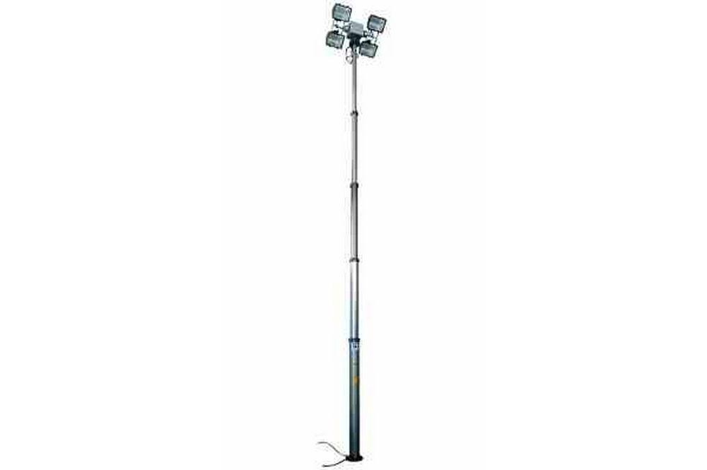 This light mast features a remote control pan tilt head, allowing operators to individually adjust the light heads. The lamps are connected to the power source via a water tight male pin connector that attaches to a receptacle located on the end of the telescoping boom. All wiring runs through the mast, meaning no loose wires when the tower is collapses. These light masts are typically mounted to trailers or other stable surfaces via a 12 inch square, 1/2 inch thick mounting base-plate which has been drilled to accept four mounting bolts (3/4 inch). A 24 inch wide and 1/4 inch thick mounting plate is attached to the upper section of the mast which provides a strong and stable platform for the four metal halide fixtures. We can equip this mast with 1000W or 1500W Metal Halide lights or a wide variety of high powered LED lights with comparable power. We also offer an alternative choice of conventional electric or manually operated towers equipped with winches for raising and lowering. Call us at 1-800-369-6671 or contact us at to discuss any special custom ordering requirements. Suggested Applications: Construction sites, event lighting, emergency services, highway projects, industrial plants, mining, excavation, natural disaster relief, environmental cleanup, and anywhere a mobile light source with large area coverage capability is needed.